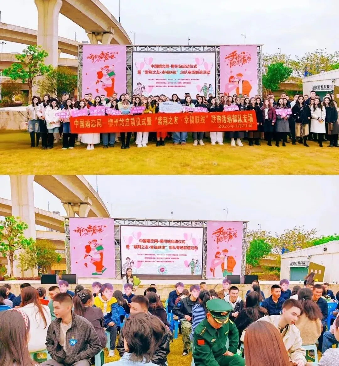 3月21日,由市妇联、市总工会、团市委、市双拥办、城中区妇联、城中区退役军人事务局、驻柳某部队主办的中国婚恋网——柳州站开幕启动仪式暨“紫荆之友·幸福联线”联谊交友活动在柳东大学城772彩虹街大草坪举行。