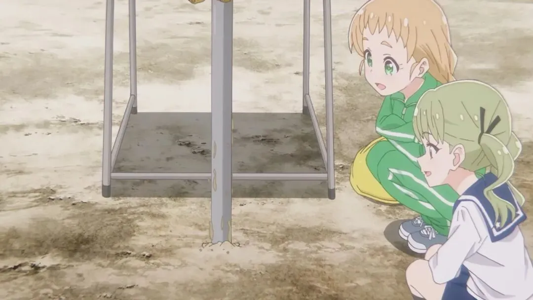 我印象特别深的一段是,为了准备学校的文化祭,这群女孩竟然跑到操场上去实地进行土壤样本采集。看着她们拿着工具,在那儿一脸认真地钻取土芯、分析土层的质地和成分,你就会猛然意识到,这可不是那种披着社团外皮喝茶聊天的作品,这种对日常生活的“地质学解构”,真的带有一种特别的、属于理科生的浪漫。