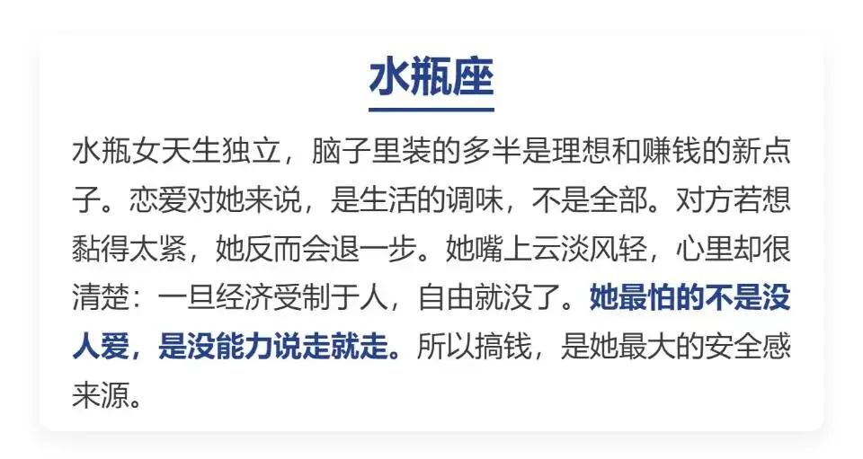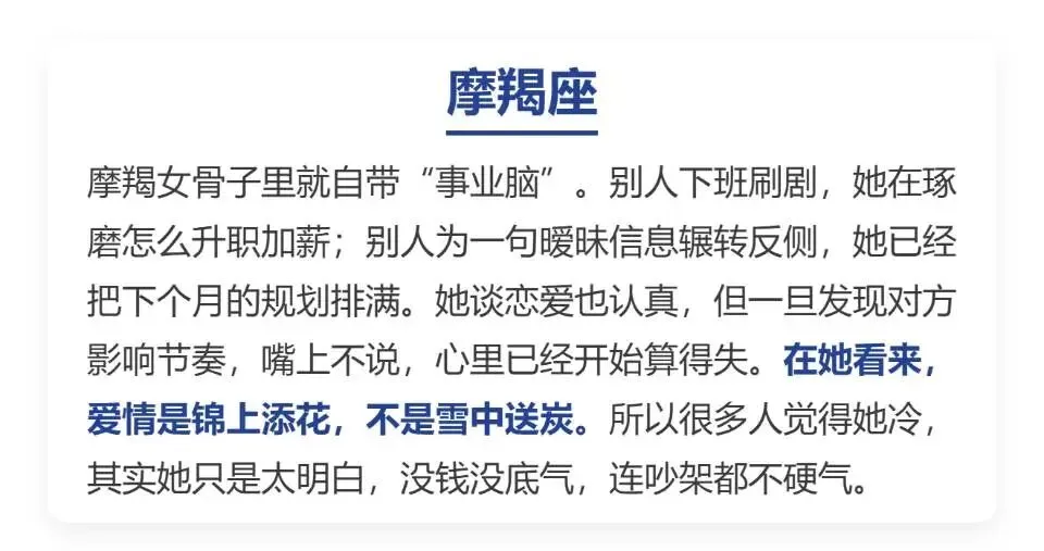 感情这件事,说重要也重要,说白了却不能当饭吃。成年人的世.界,谁兜里有底气,谁心里才不慌。不是她们不渴望爱情,而是更清楚安全感从来不是别人给的,是自己挣的。今天就聊聊,那些不把恋爱当全部、偏偏活得最清醒的星座女。