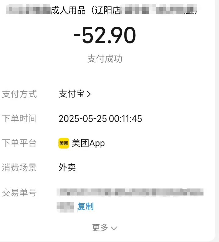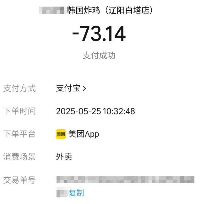 5月24-25日,女主跟我说她在沈阳新民家中,后来查看女主手机才发现,当时她在辽阳某民宿点了外卖安全套,还订了炸鸡。后来女主亲口承认当时就是出轨了,她跟辽阳一个男生从4月份开始网恋,直到她去大连上学后才不怎么联系。