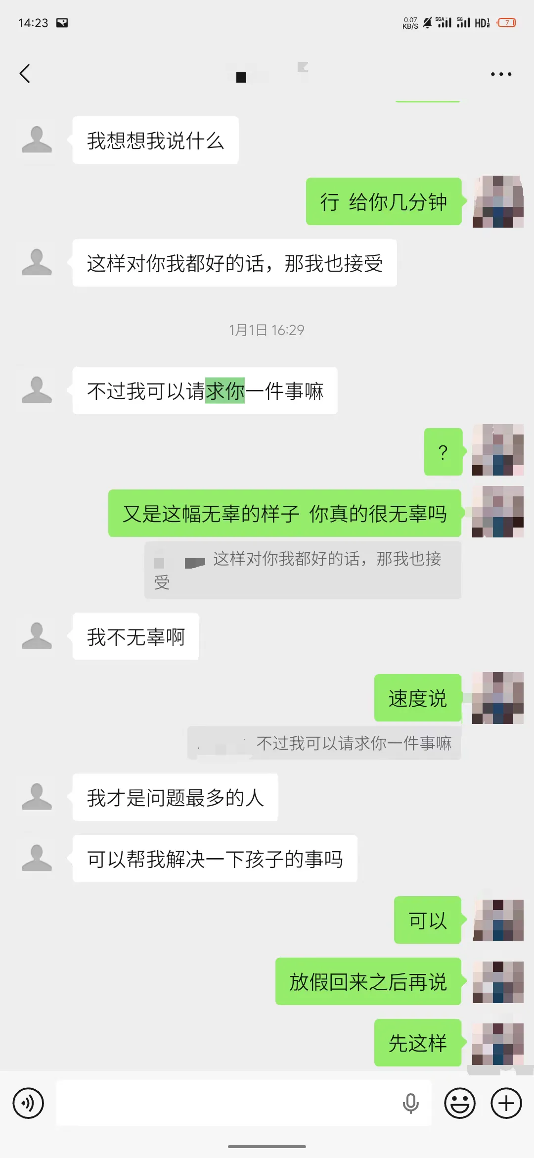 见面的时候女主一直在装可怜,跟我说她被孤立了,心里很难受。女主承认了自己做的一切,想跟我和好,同时还在试图挽留校内新男友,跟别人说我是在诽谤报复她。