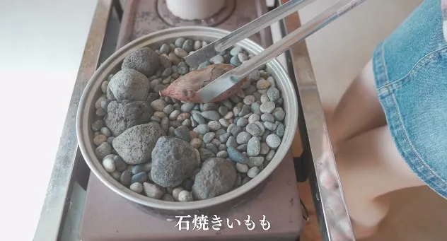 石头放到烤炉上,可以加热食物,也能烤个红薯之类的,看起来很美味。