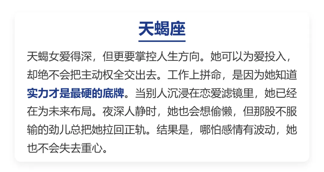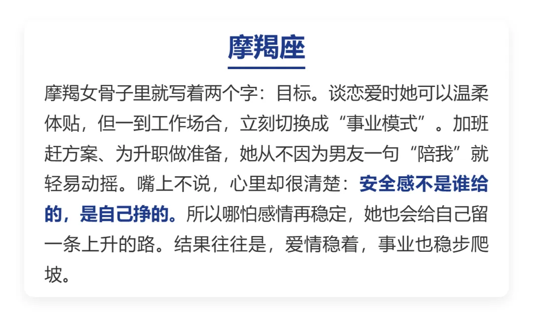 有些.女生.一谈.恋爱,就把全.世界.都让.位给爱情;但也有.些人,心里再.甜,脑子都.清醒。她们.不是.冷血,而是.太明白——爱情是.锦上添花,事业.才是立.身之.本。今天咱.们就聊.聊,那些恋.爱可.以谈,事业绝.不能断.的星.座女。