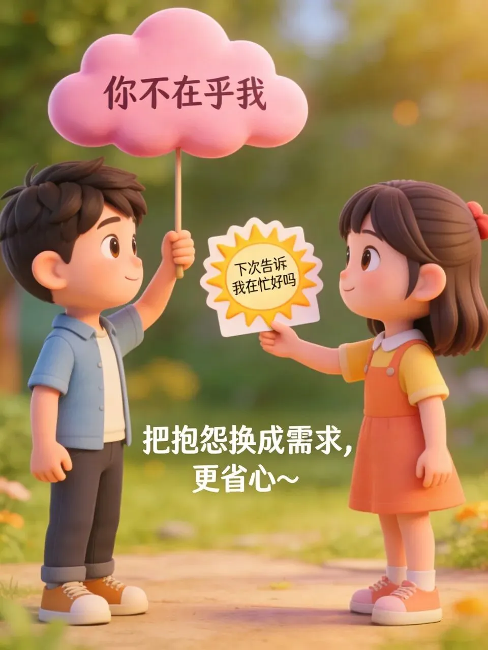 别再说“你根本不在乎我”,换成“我今天等你消息有点久,下次可以告诉我在忙吗?” 直接说需求,比猜谜省力100倍!“3件小事”清单📝