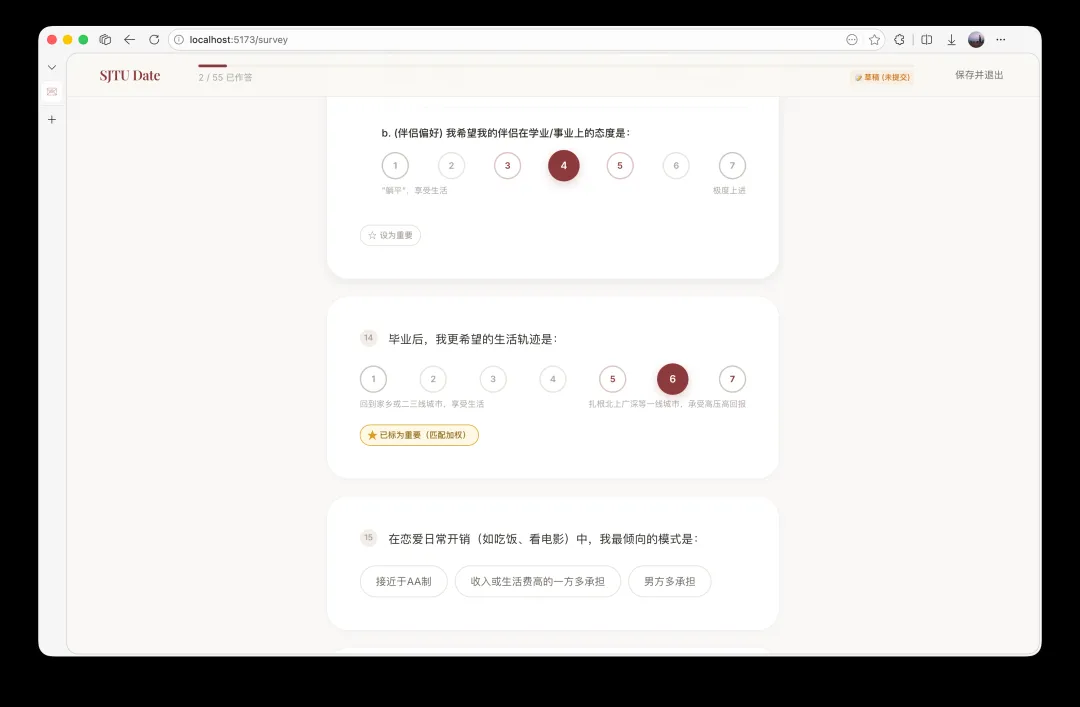 与市面上“左滑右滑”速食交友不同,这些大学生开发者基于心理学量表设计了含65个问题的深度问卷,每周为用户匹配一名在价值观、人生轨迹、生活颗粒度、情感风格等方面“契合”的对象。