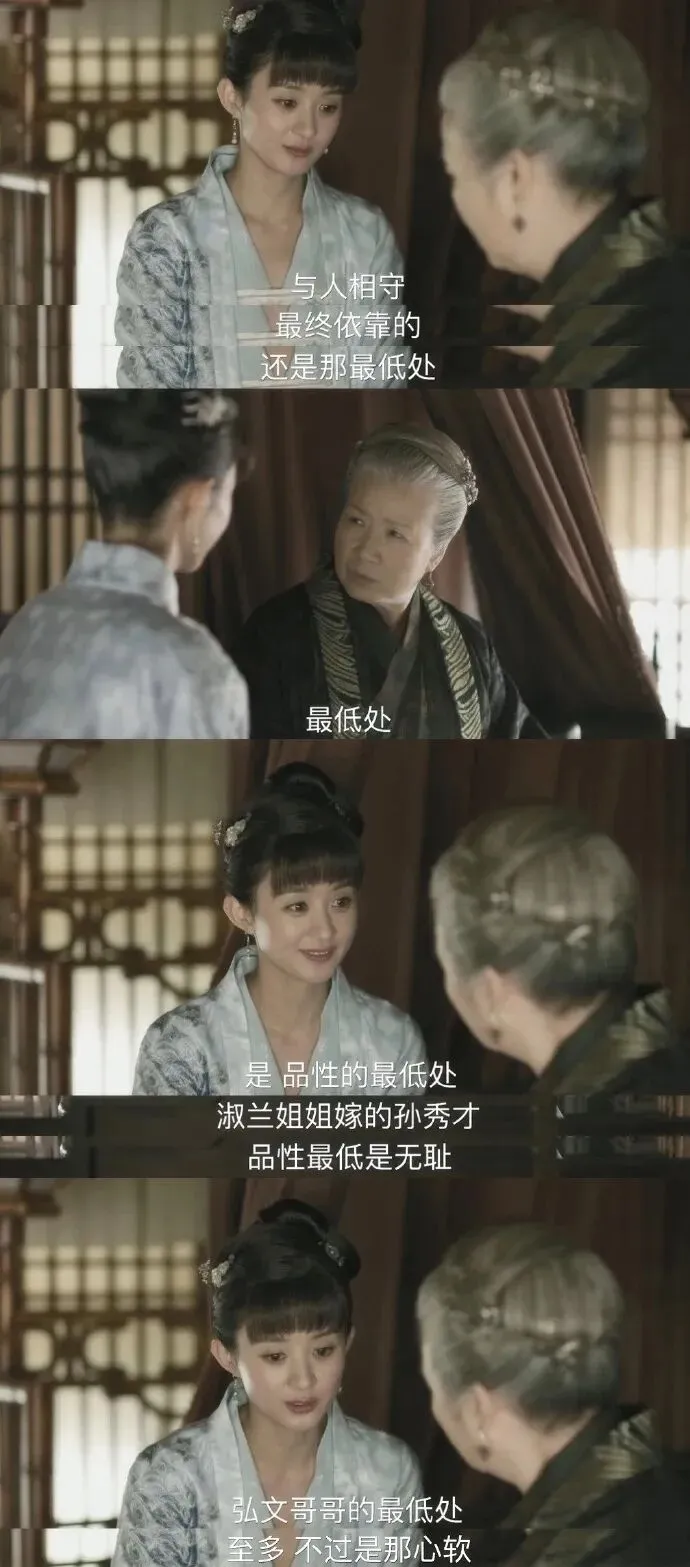 前段时间重刷《知否》,又看到明兰和贺弘文议亲那段,明兰和祖母说的一句话:“与人相守,最终依靠的,还是那最低处,品性的最低处。”其实这句话对现代人也很适用。