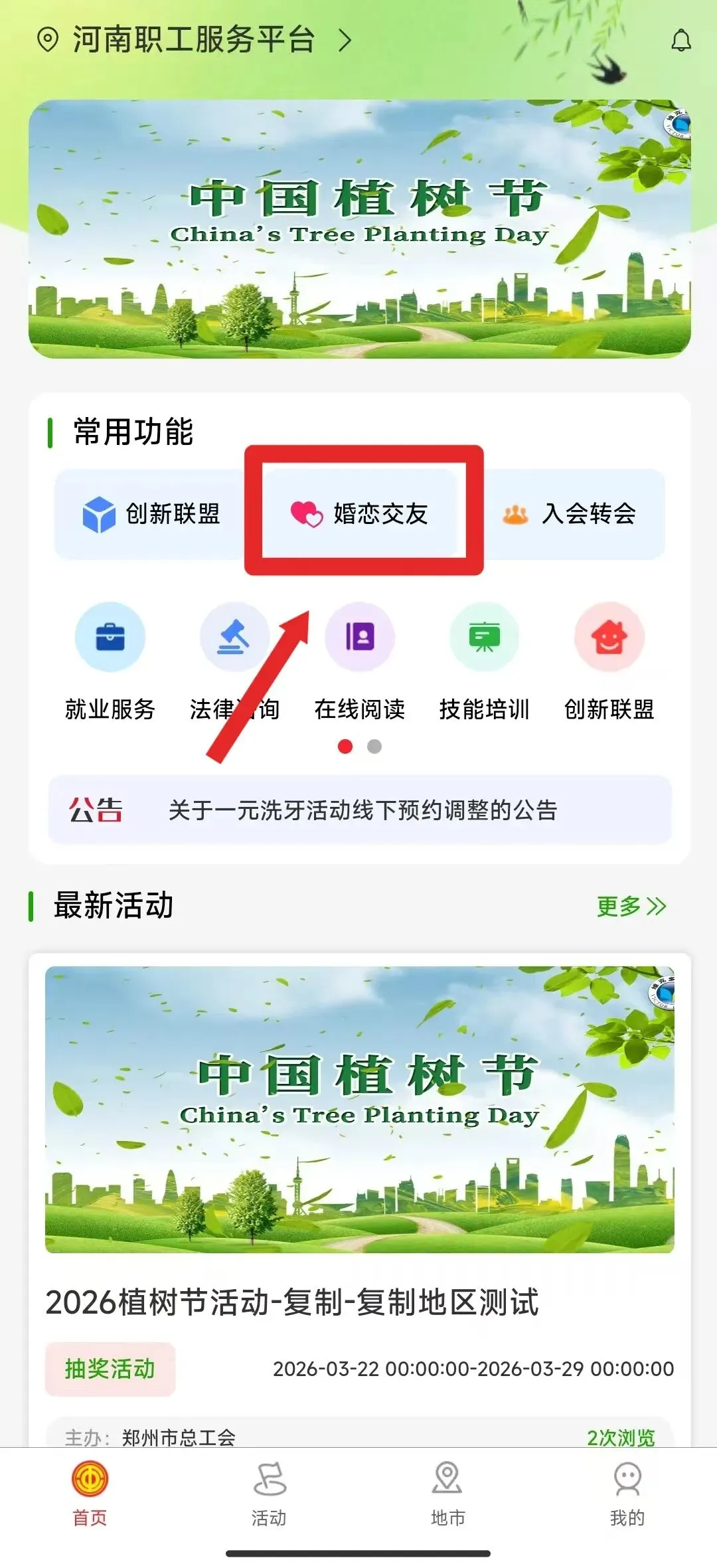2. 进入APP首页,找到“婚恋交友”模块: