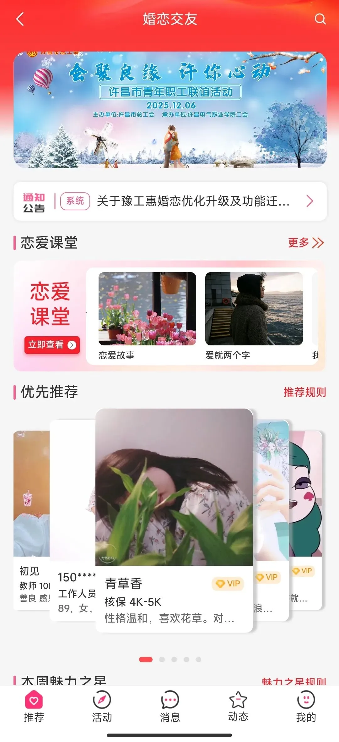承载着大家的期待,婚恋系统整合升级后,流程更简化、功能更全面,每一处变化都贴合大家的交友需求,只为帮大家更轻松地寻觅良缘: