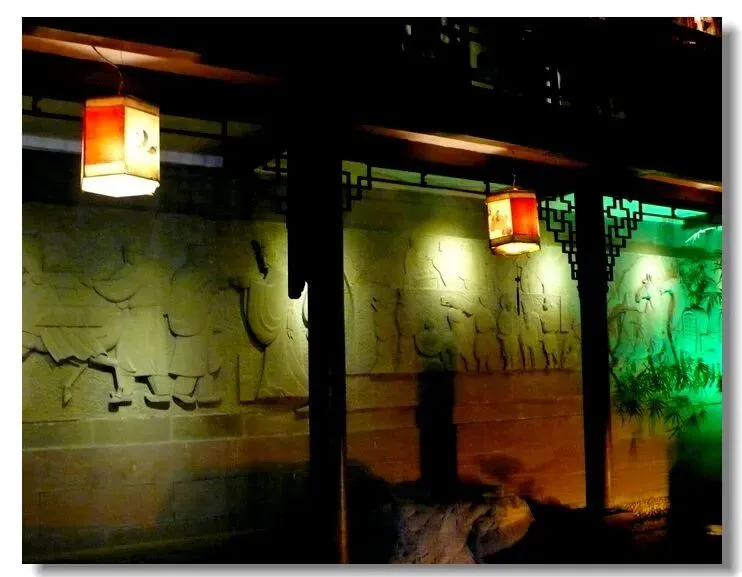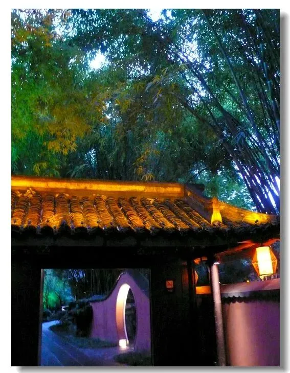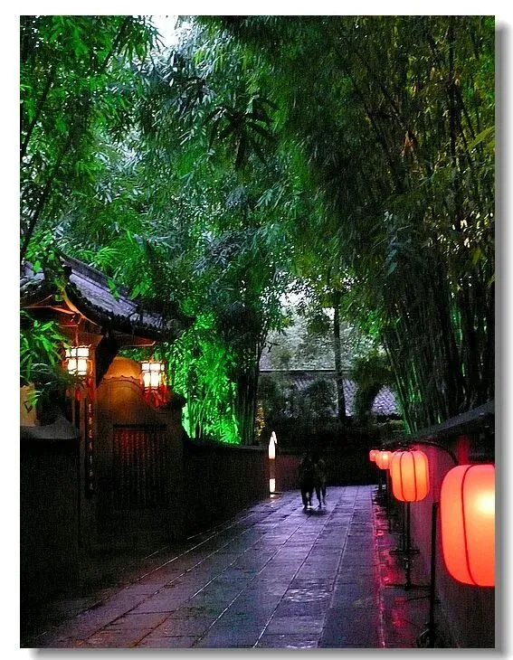红色花墙蜿蜒前行,盏盏宫灯点亮静谧满园翠竹从墙头越出清风徐来,飒飒作响要是没有路尽头的行人我真似乎看到杜老那徐徐寂寥的背影了...