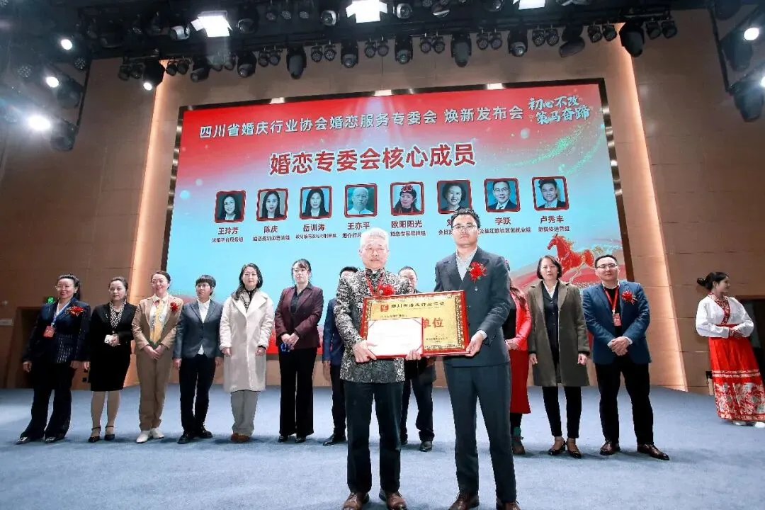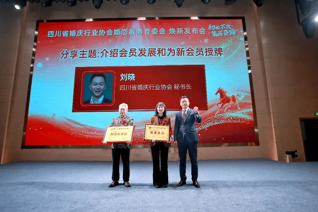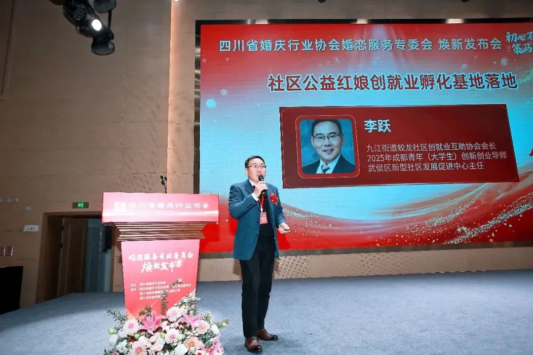 四川省婚庆行业协会与全国各省市婚庆婚恋协会会长现场签署合作协议、与成都师范学院共建“婚恋规划师”培训体系,以及与九江街道蛟龙社区创就业互助协会共建全省首个“社区公益红娘创就业孵化基地”。
