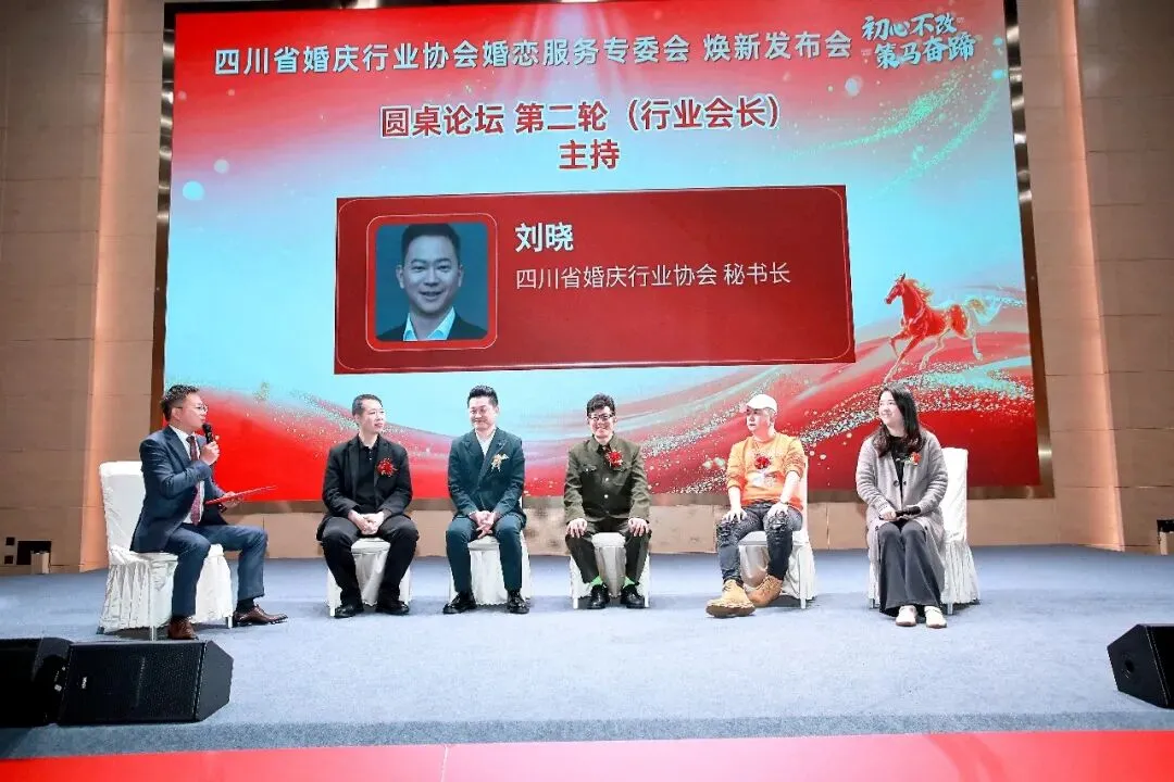 由王亦平会长主持,婚恋资深专家严山、爱情节创始人冯俊岭、文商旅跨界专家李持坤、口味红娘欧阳阳光、四川电视台主任聂晓平、五位行业不同领域的资深专家,为行业发展提供了多元视角与创新思路。