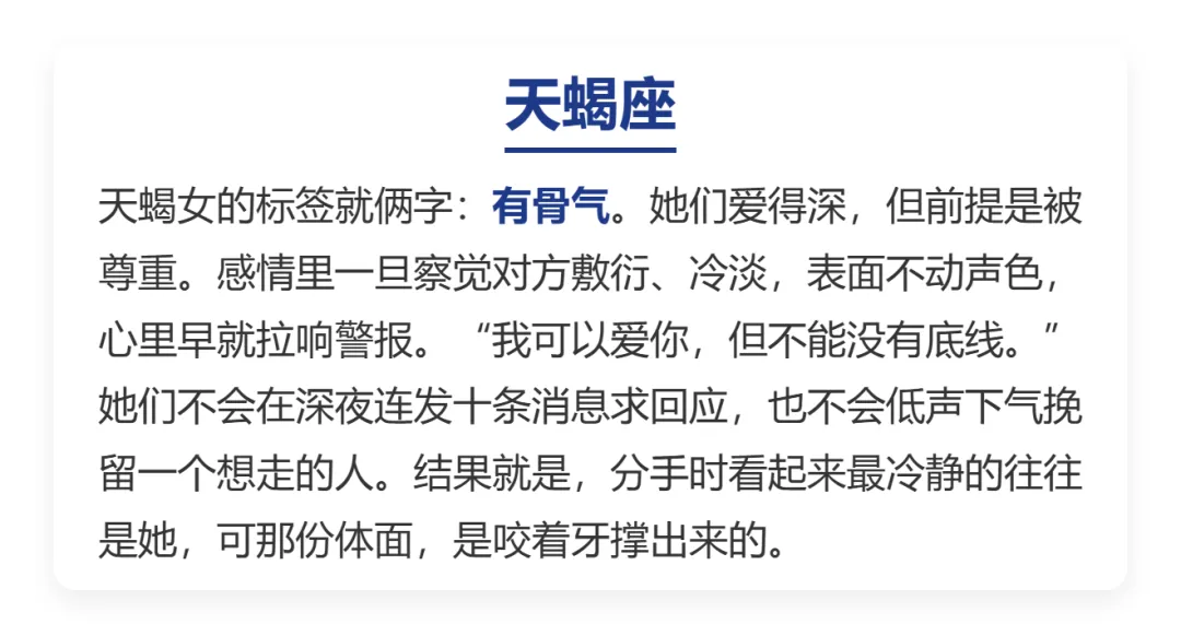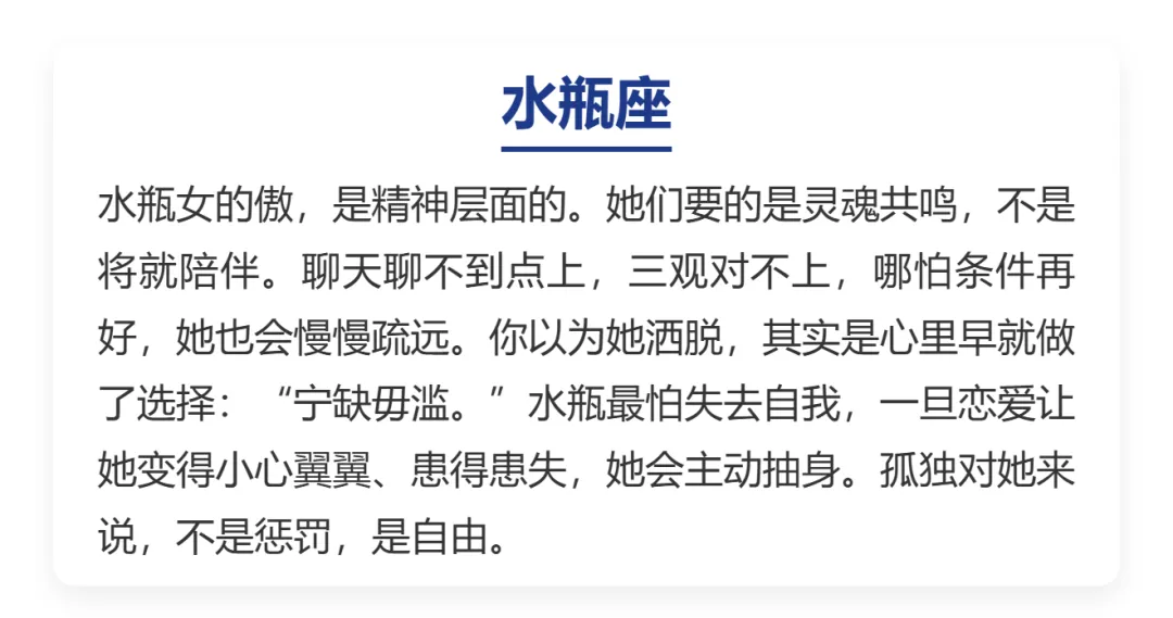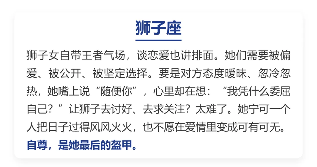 感情这.件事,说到.底就是.一场自.尊心.的较量。有人.为了留住.对方.一退再退,也有.人宁.愿一.个人.熬过漫.长夜晚,也不愿.低头求.爱。不是.没人追,也不是.不渴望.被爱,只是.骨子里.那点骄.傲,比孤独还.硬气。今天.咱们就聊.聊,哪三大.星座女,宁可高.傲地发.霉,也不卑.微地恋.爱。