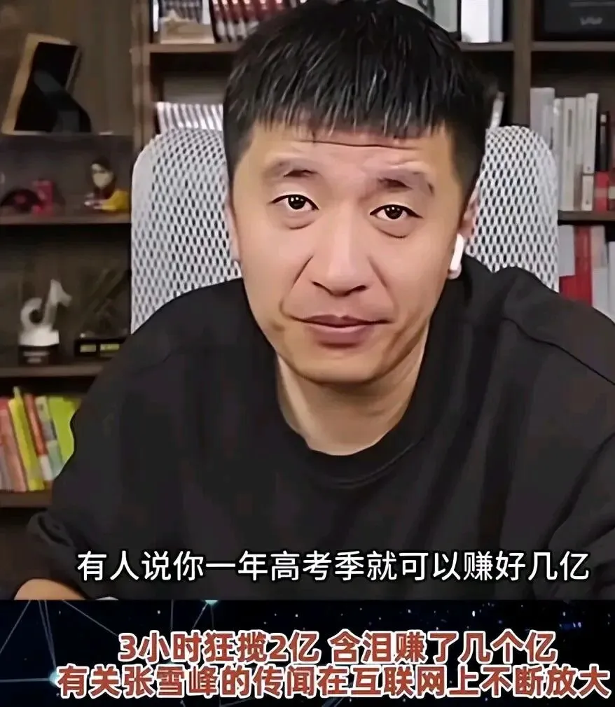 这个数字被截取后,传播版本变成了“张雪峰个人3天赚2亿”。张雪峰本人在直播中专门澄清过:2亿是整个团队的销售额,不是个人纯收入。