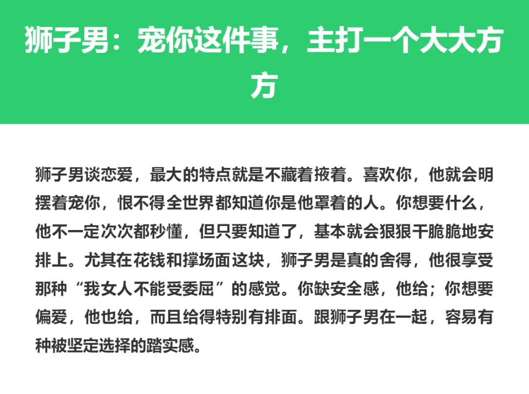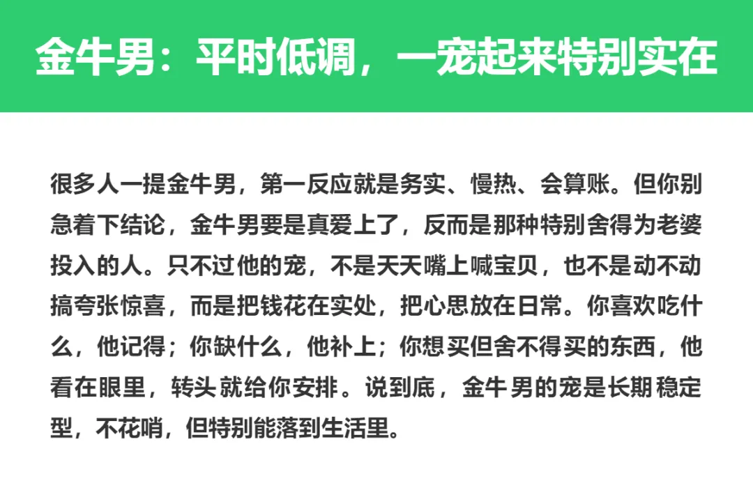 有些男生谈恋爱,嘴上说得天花乱坠,真到关键时候就开始装傻;但也有些星座男不一样,他们一旦认定一个人,宠老婆这件事根本不是说说而已,简直就是自带“自动打款”属性。你想要的安全感、偏爱感、仪式感,他不是听不懂,而是真的会去做。说白了,跟这种人恋爱,最大的感受就是:你不用反复提醒,他自己就知道该怎么对你好。今天就来聊聊,恋爱里那些堪称“行走的宠妻提款机”的星座男,看看他们到底是怎么把老婆宠上天的,关键时刻又有多靠谱。