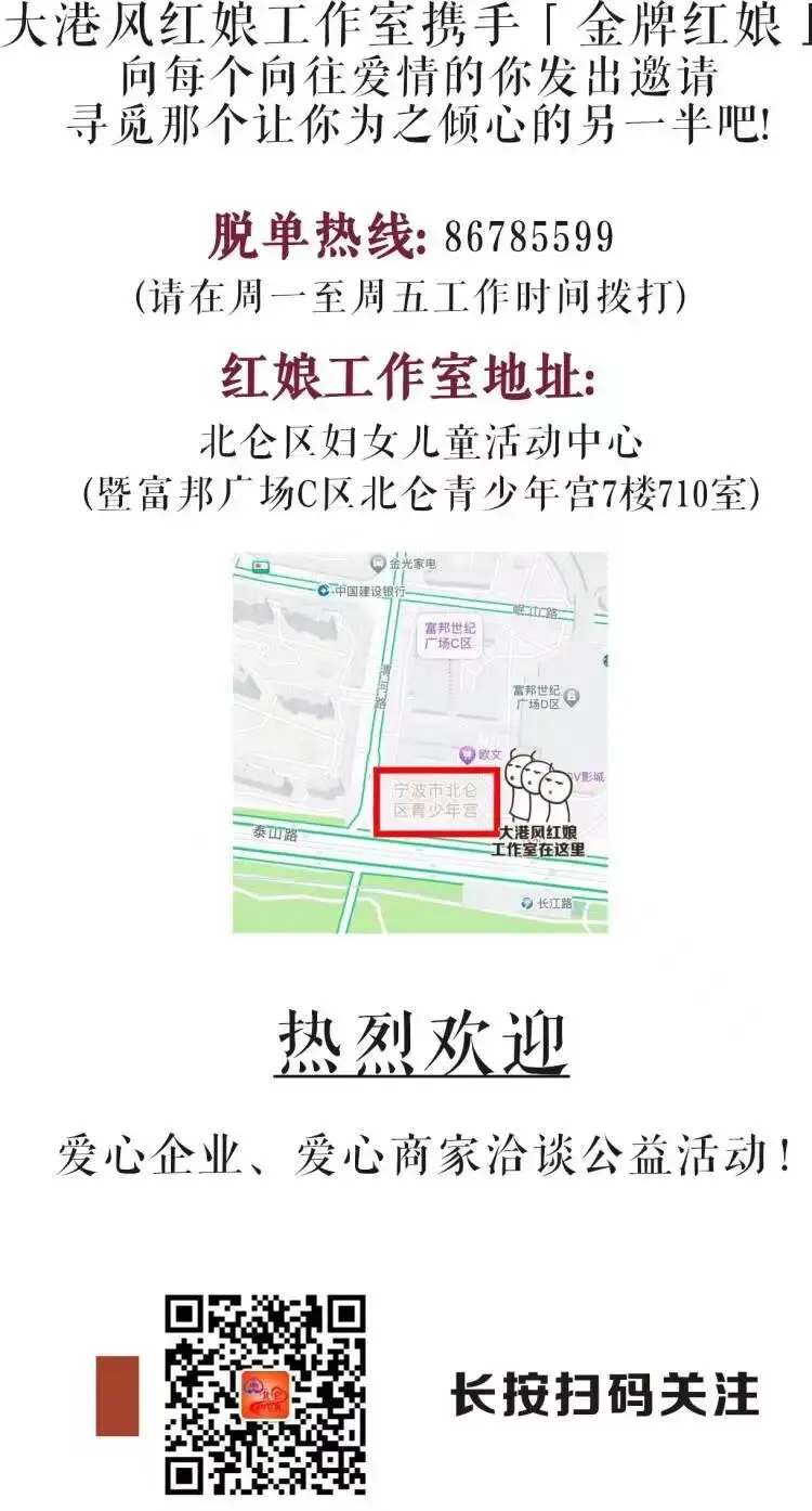 择偶条件:身高160厘米以上,本科学历,工作稳定,温柔文静,性格好,北仑本地人优先。