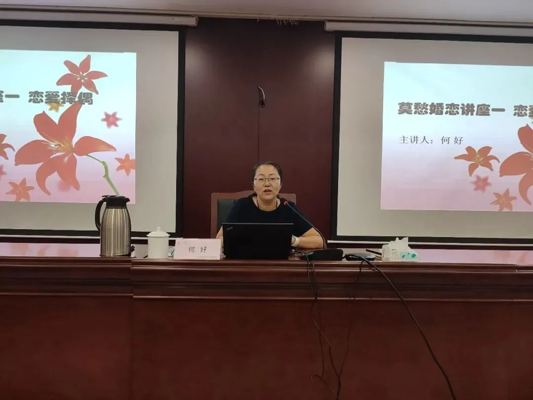 何好老师围绕“未婚男女如何正确地恋爱择偶”这一主题,以单身未婚男女的情感困惑及恋爱问题为重点,结合“爱情是什么?”“爱情与喜欢、激情、异性相吸的关系与区别是什么?”“如何在茫茫人海中寻觅适合你的另一半?”“青年人择偶条件和注意事项有哪些”等四个问题,通过丰富的案例和经验分享进行深入浅出的讲解,帮助青年员工树立正确的择偶观、婚姻观,进一步提高提升青年员工的生活幸福指数,促进工作效率提升。