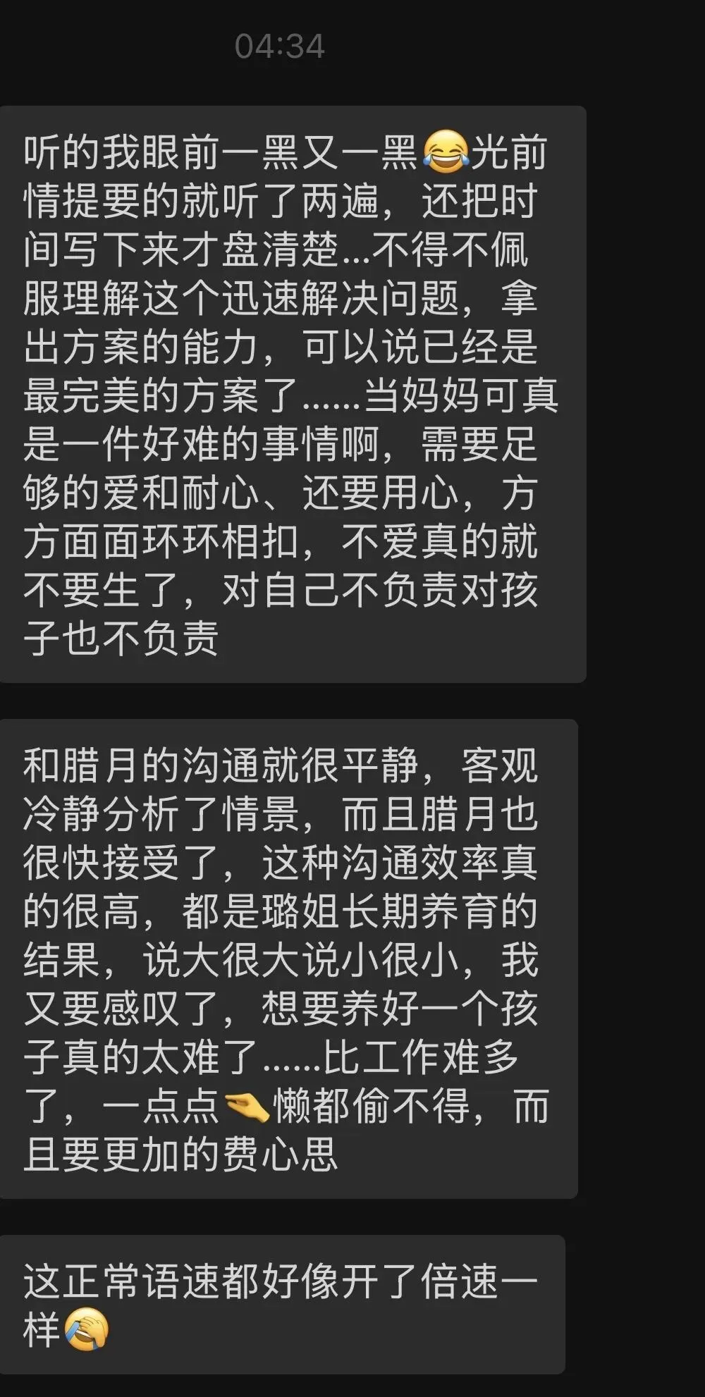 然后就是今天早上,我爸爸和腊月有一个小小的冲突,作为一个非常通情达理既不惯着孩子也不惯着老人的妈妈,我是如何从中协调的,欢迎F脑小伙伴来找我领取这个录音。