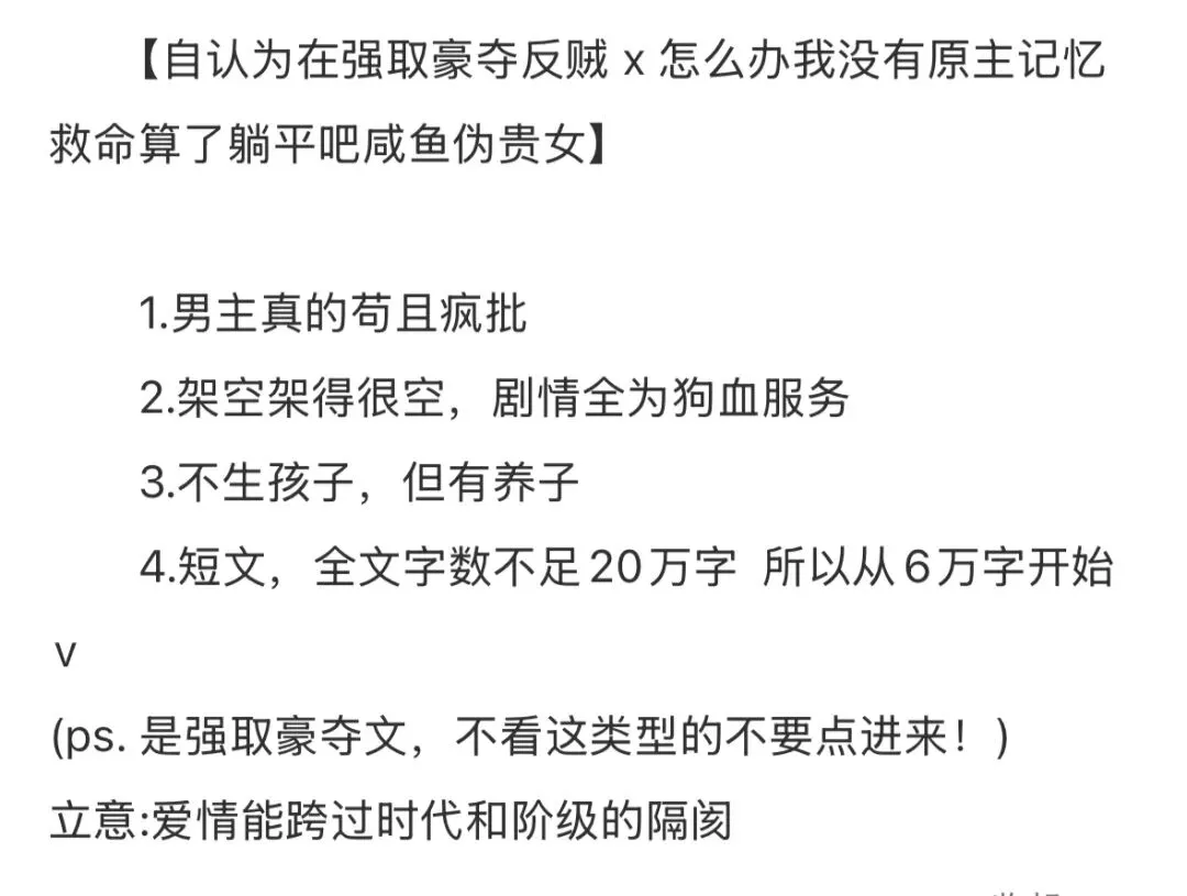 其实本来想发吐槽的,但是这几本我都看完了,我觉得这种小甜文还是有受众的,在某种特别想看男主超爱的时候,还是可以看看的。