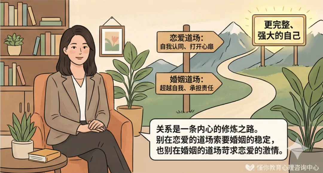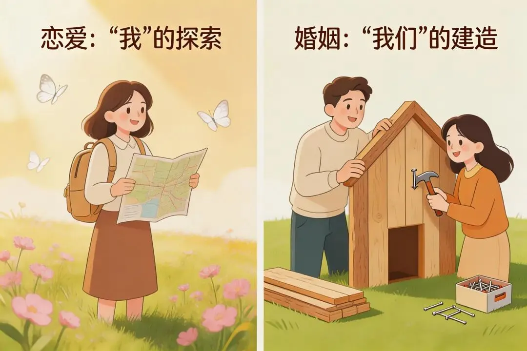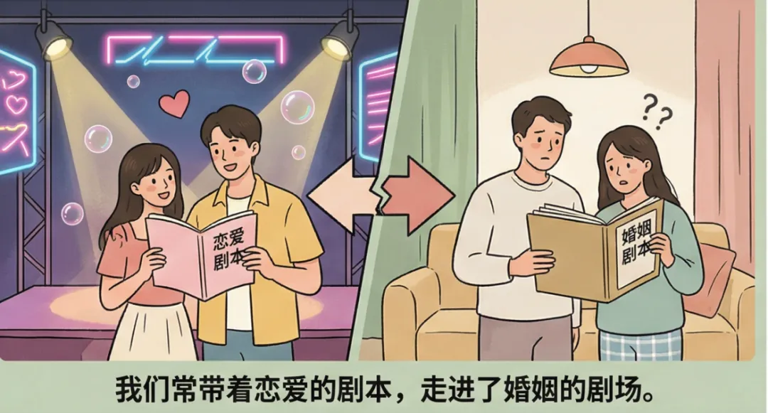 这听起来像句正确的废话,但恰恰是很多情感困扰的根源——我们常常带着“恋爱”的剧本,走进了“婚姻”的剧场,结果发现台词不对,剧情走偏,两个人都在茫然中感到受伤和疲惫。