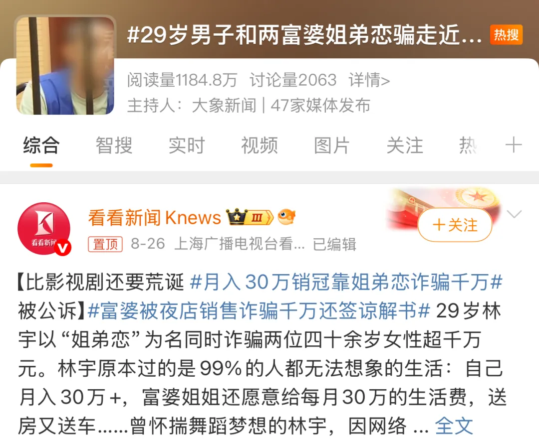 近日,一则“姐弟恋”诈骗案引发热议。29岁酒吧销售主管林宇(化名)凭借外形与高情商,同时与两名年长女性交往,以恋爱为名实施诈骗,涉案金额近2000万元,钱款均被其用于网络赌博,目前已被依法提起公诉。