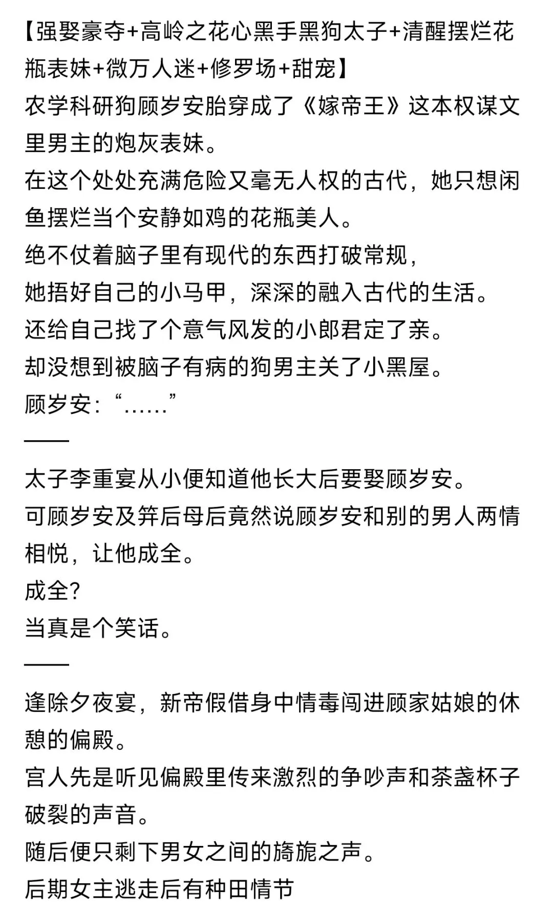 >BG《太子登基后,炮灰表妹被强夺了》恋爱脑太子强取豪夺