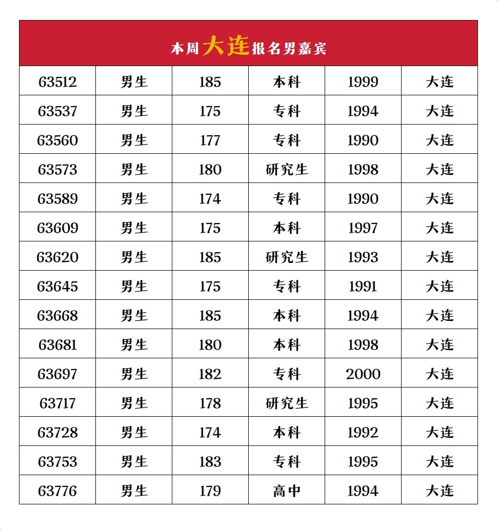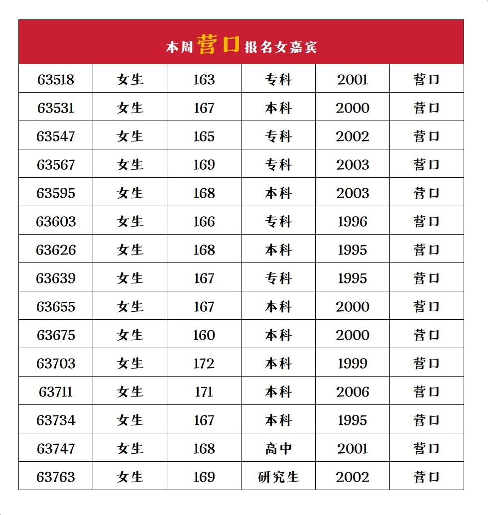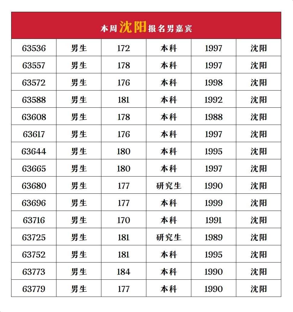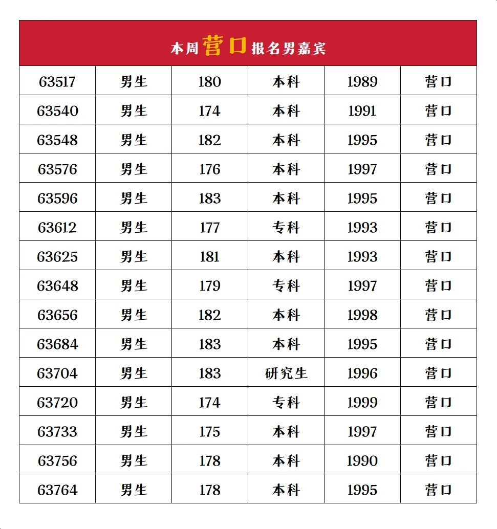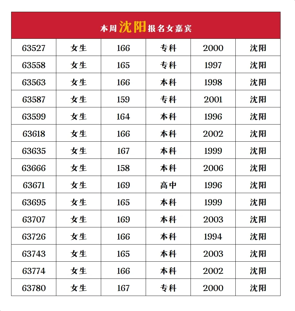 本期恋爱匹配已报名嘉宾,篇幅有限,每个城市仅展示部分嘉宾,目前辽宁开放城市:沈阳、大连、鞍山、盘锦、锦州、营口、朝阳、本溪、抚顺