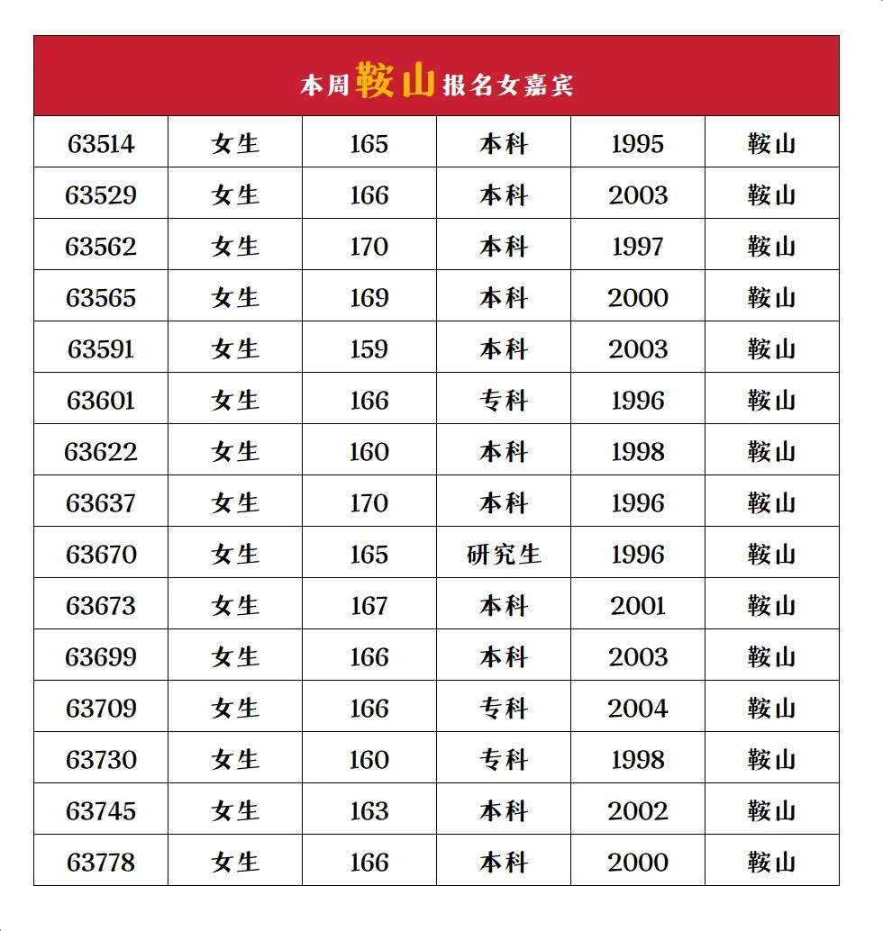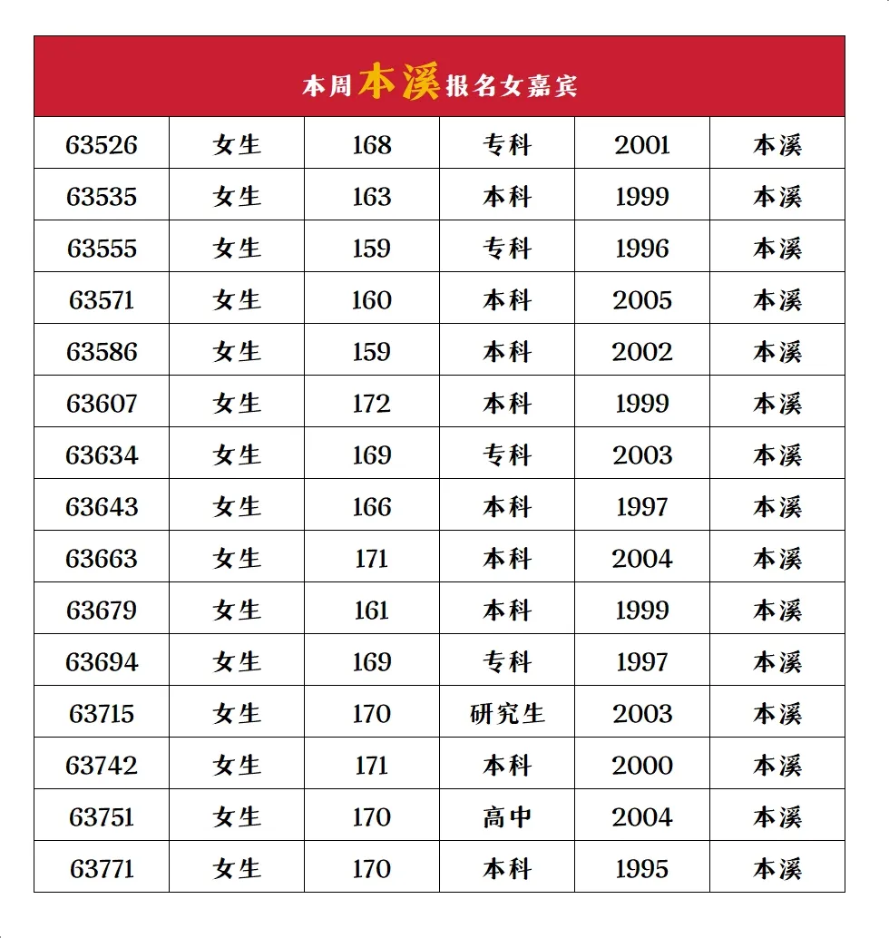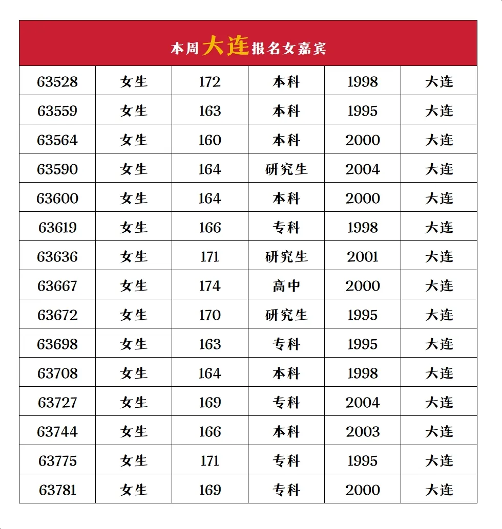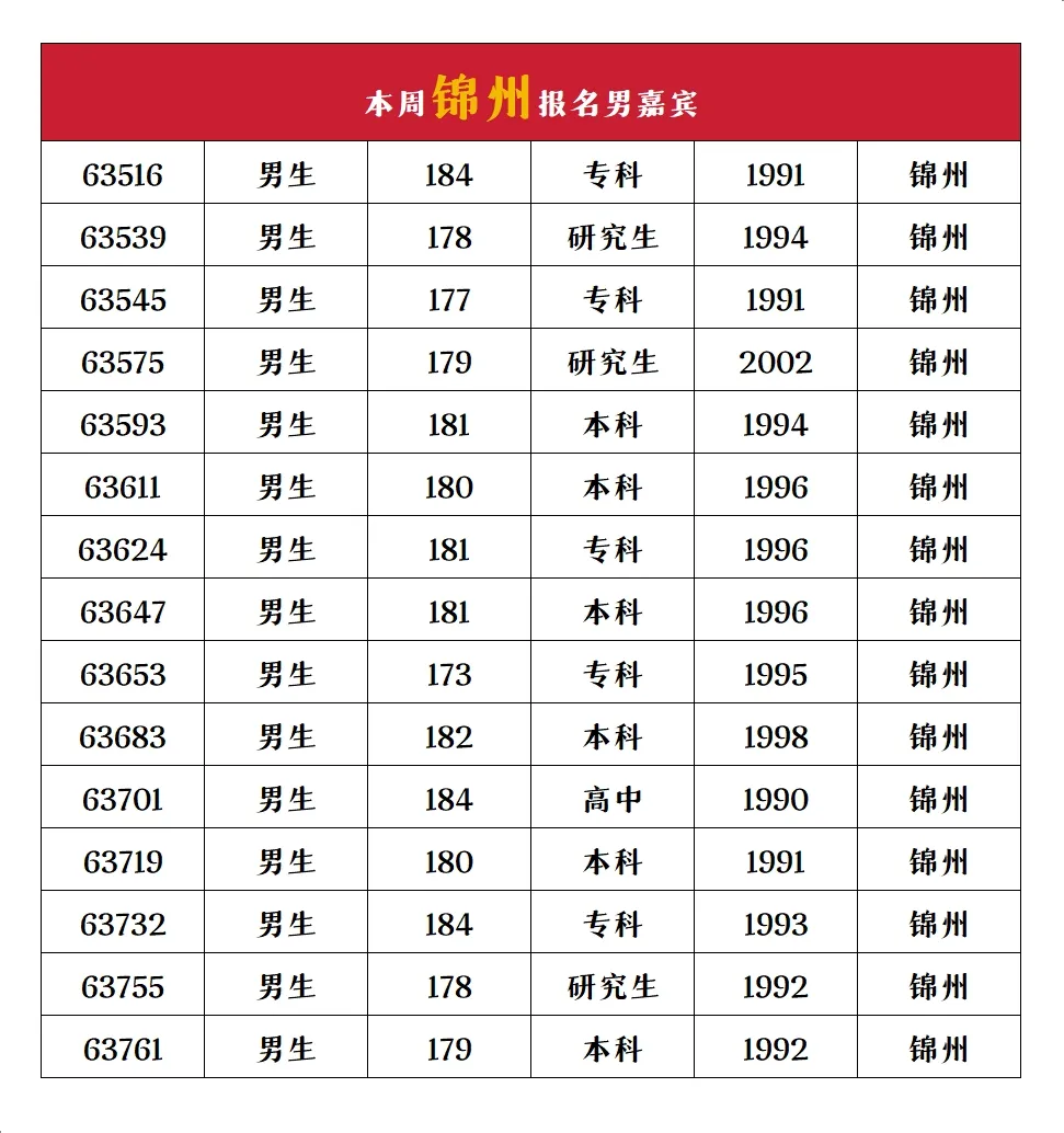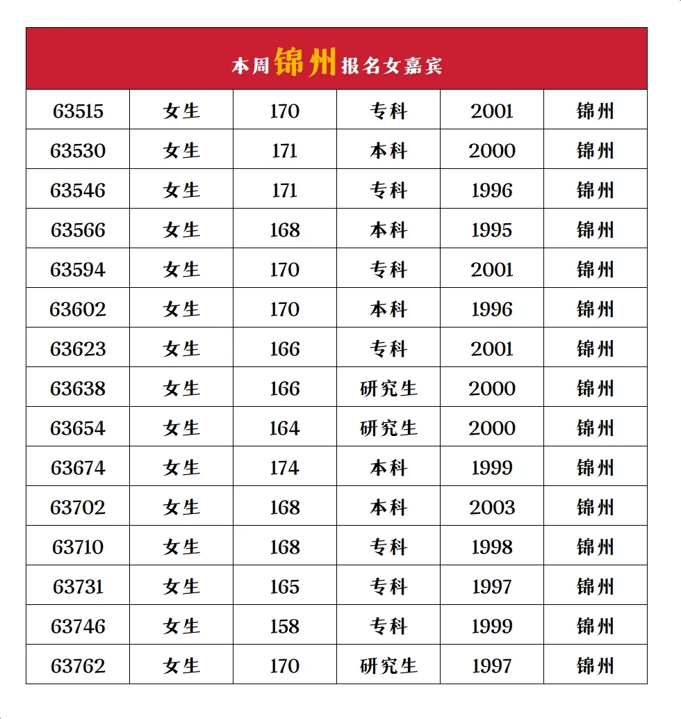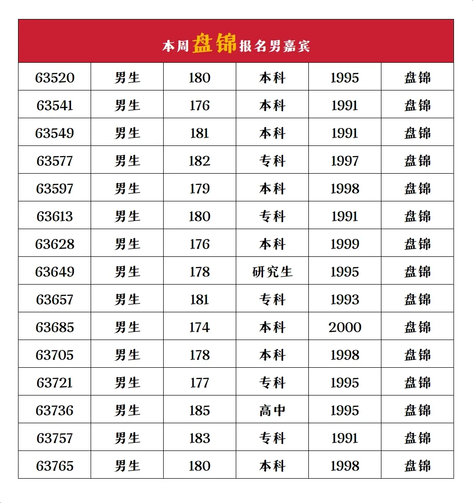 本期恋爱匹配已报名嘉宾,篇幅有限,每个城市仅展示部分嘉宾,目前辽宁开放城市:沈阳、大连、鞍山、盘锦、锦州、营口、朝阳、本溪、抚顺