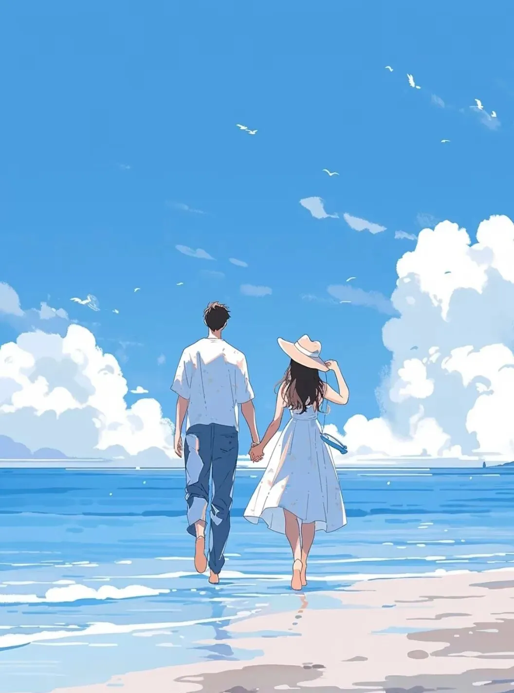 晒出与男友的海边合照,亲密相拥。