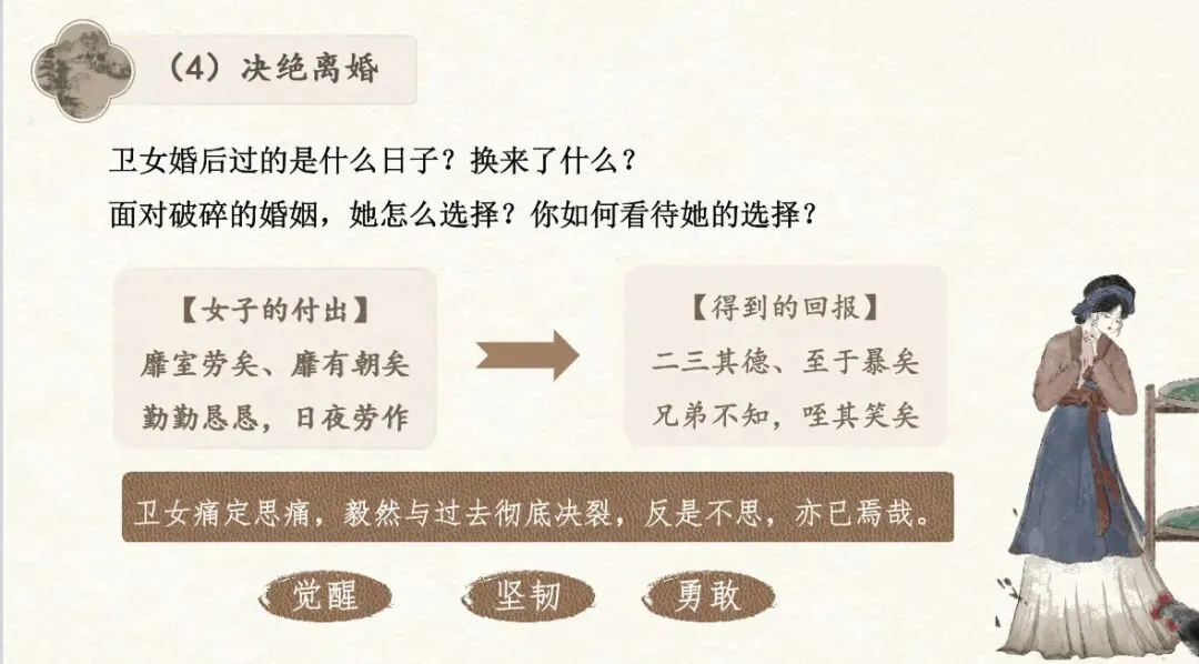 我突然意识到,这不是一次偶然的“课堂爆款”,它让我重新思考了一个问题:到底什么样的课文能吸引学生?学生不是不喜欢古诗文,而是不喜欢“与我无关”的古诗文。《氓》讲的是两千多年前的事,但“渣男”“恋爱脑”“被辜负后的觉醒”,这些话题今天依然鲜活。