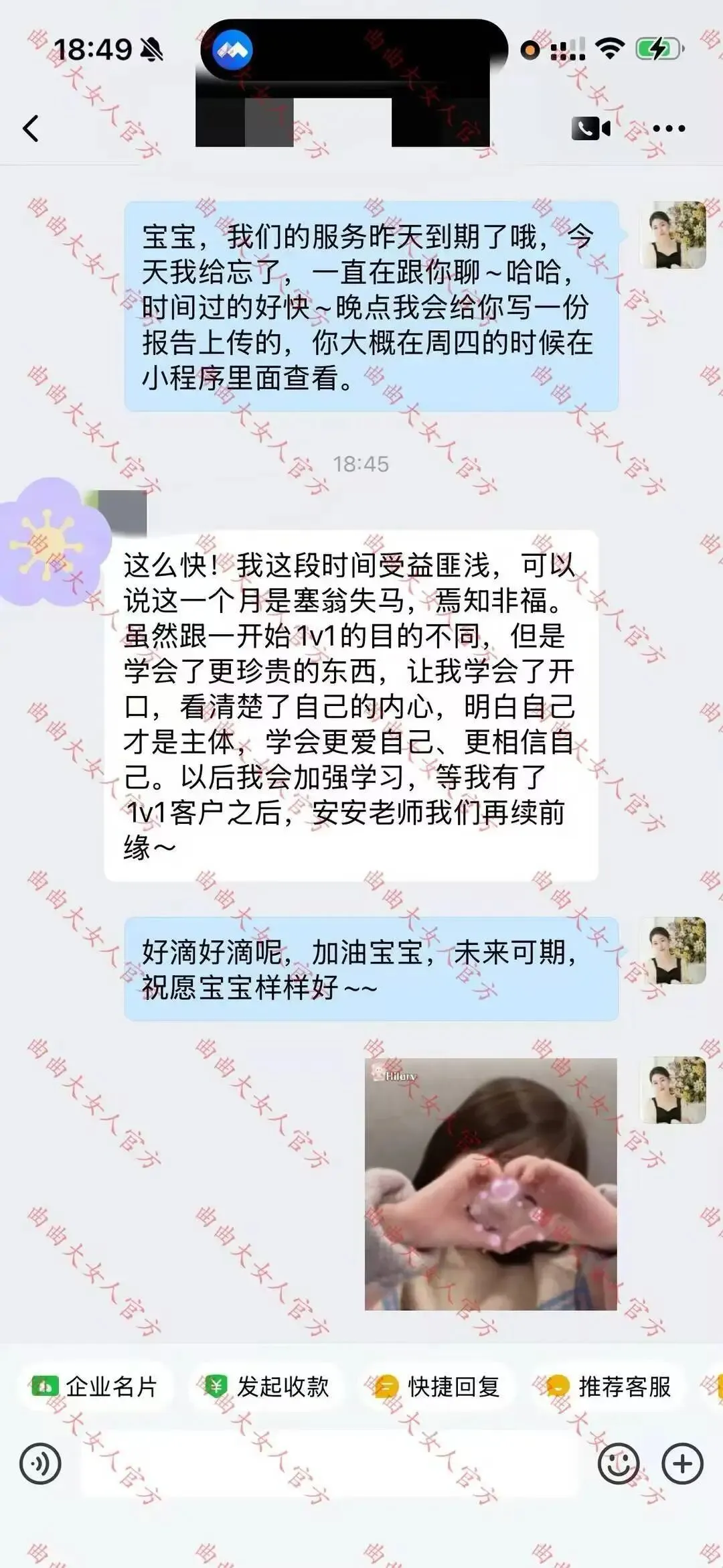 这一个月的服务结束了,感恩我们之间这段缘分❤️希望你与安安老师这段美好的经历,能够伴随着你的工作和生活,时刻提醒你成为一个更稳定、更能够感知幸福的人🥰
