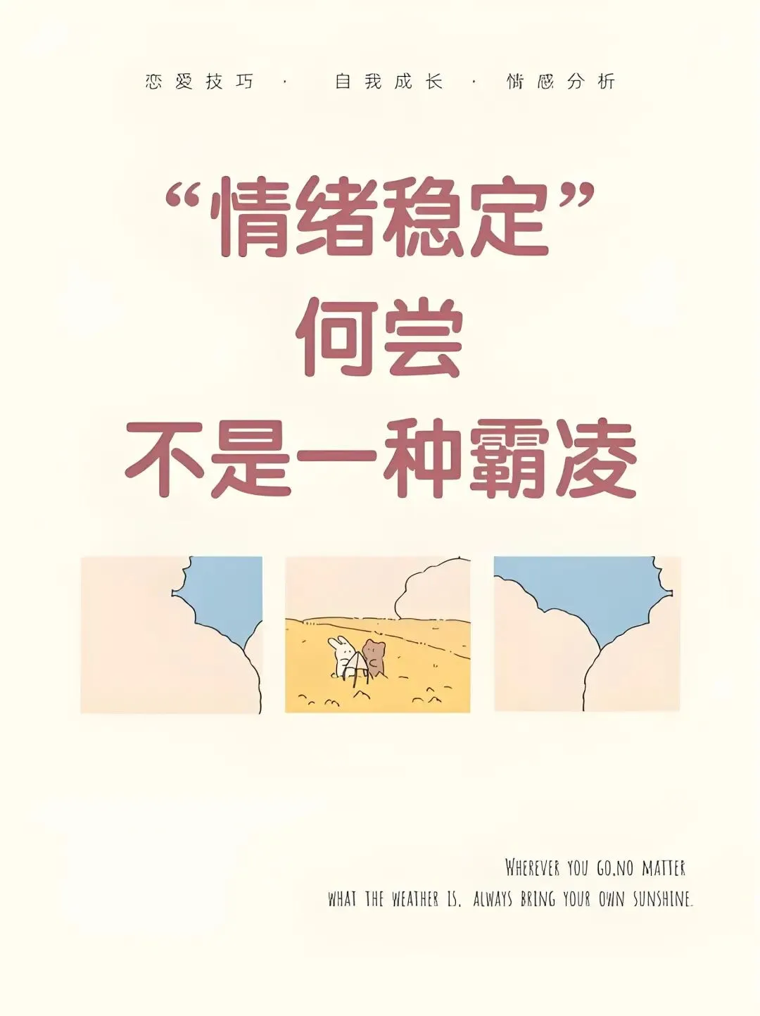 还有一点很重要,恋爱不是单纯的甜言蜜语和浪漫,更多的是两个人一起成长、一起承担。情绪管理就是成长的一部分。两个人如果能在情绪上互相支持,互相理解,感情的根基就会更牢固。