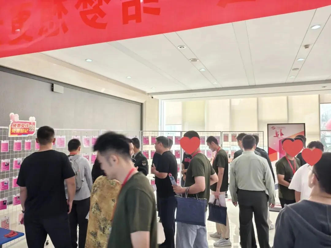 为促进退役军人高质量充分就业,2025年9月26日上午在临沂人力资源市场退役军人线上线下专场招聘会火爆举办,其中夕圆高端婚恋联合退役军人事务局打造的“【心动的信号】退役军人婚姻服务驿站”“退役军人相亲角”备受欢迎。