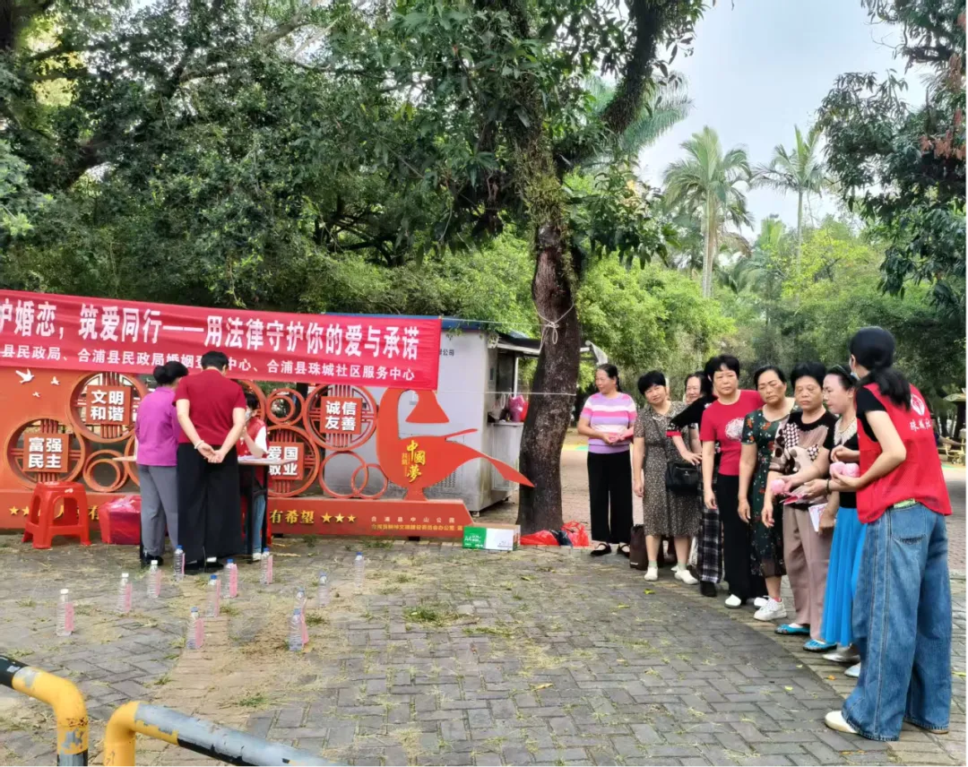 为普及婚姻知识,引导大家树立正确婚恋观,远离婚恋误区,在合浦县民政局的指导下,合浦县珠城社区服务中心于2026年3月29日在合浦县中山公园开展“法护婚恋,筑爱同行”——用法律守护你的爱与承诺活动,活动以丰富多样的形式、贴近生活的内容,吸引了众多市民群众积极参与,现场氛围热烈温馨。
