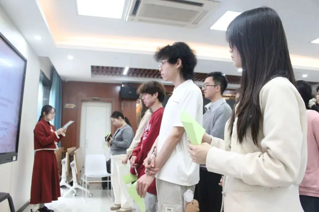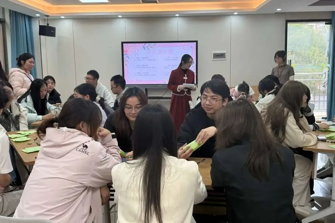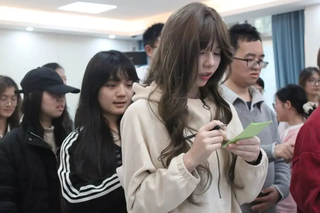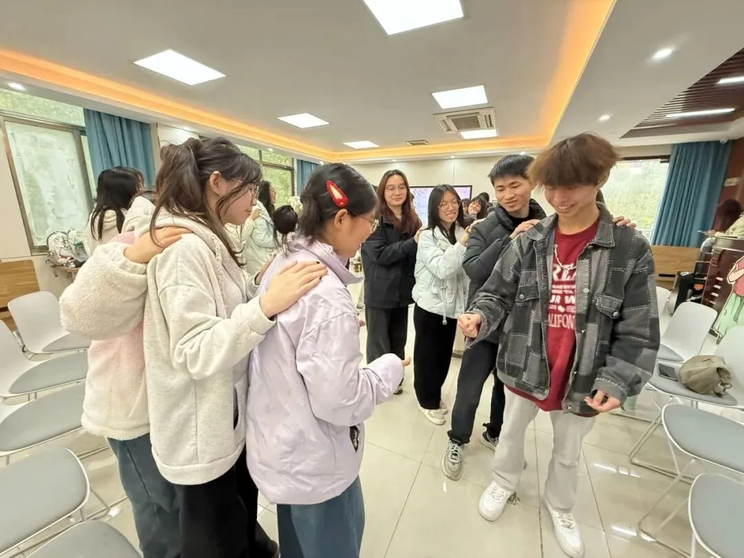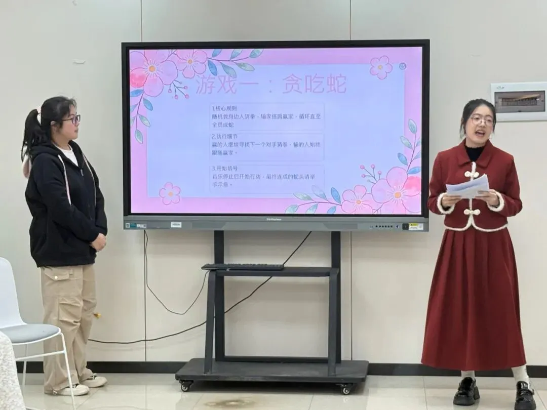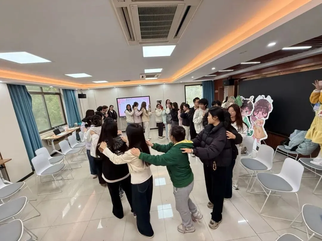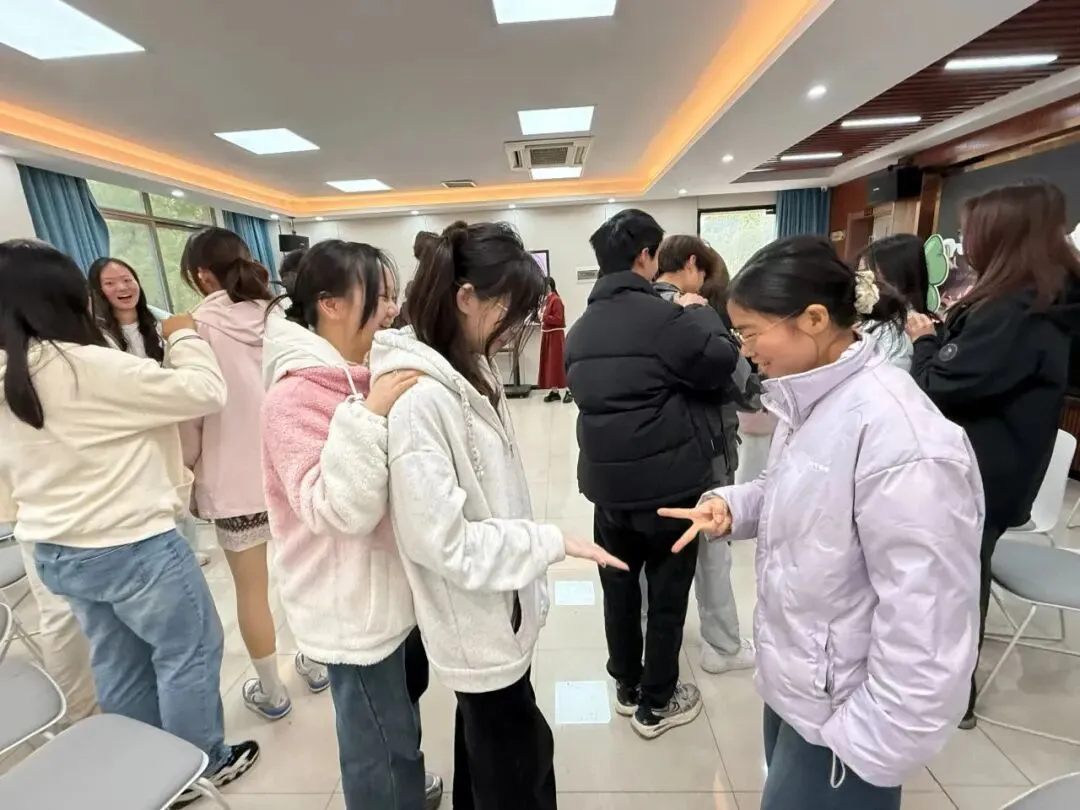 活动在“贪吃蛇”破冰游戏中热闹开场。同学们两两猜拳,输者搭上赢者的肩膀,最终连成一条长“蛇”。猜拳间欢声笑语,其乐融融。