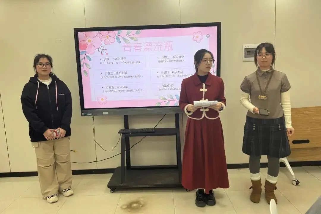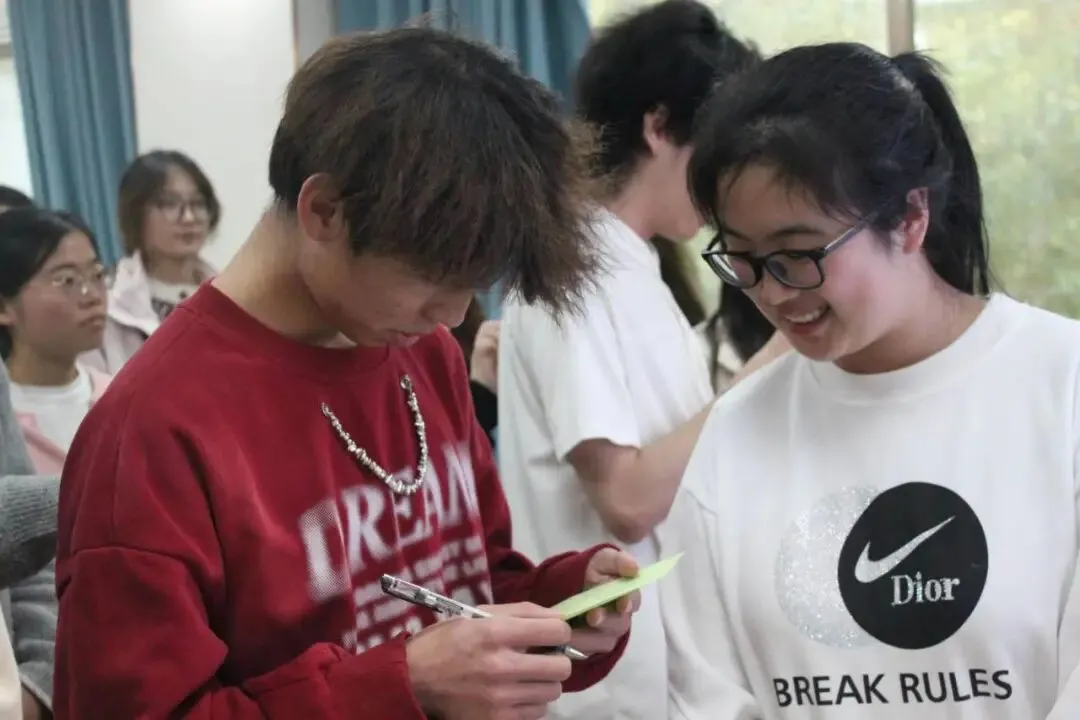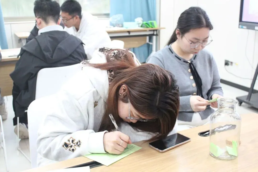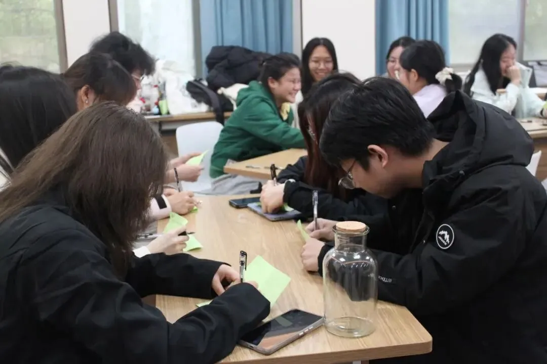 “青春漂流瓶”环节将现场带入了安静而专注的氛围中。同学们写下对异性的好奇与困惑,投入瓶中,在小组内真诚回应。同学们将藏在心底的疑问提出,在这个安全的场域里被倾听、被理解,从两性视角看到答案,理解差异。