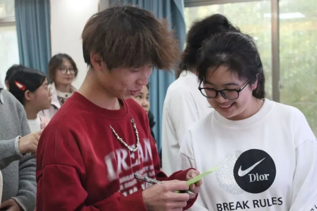 活动尾声,同学们以“三行情书”写下对爱情的美好期许。字里行间流淌着对爱的向往与对成长的期许。围坐一圈分享时,大家直抒胸臆,从羞涩到勇敢,从陌生到信任。