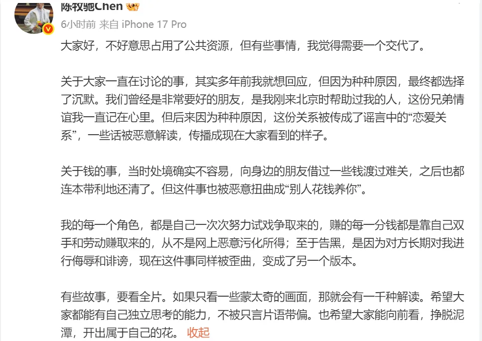 法院2025年判决无证据证明两人的恋情,但承认他们曾同居。陈牧驰表示,这段关系被恶意扭曲,甚至被误解为“别人花钱养你”,但他强调自己已经走出困境,专注于家庭生活。