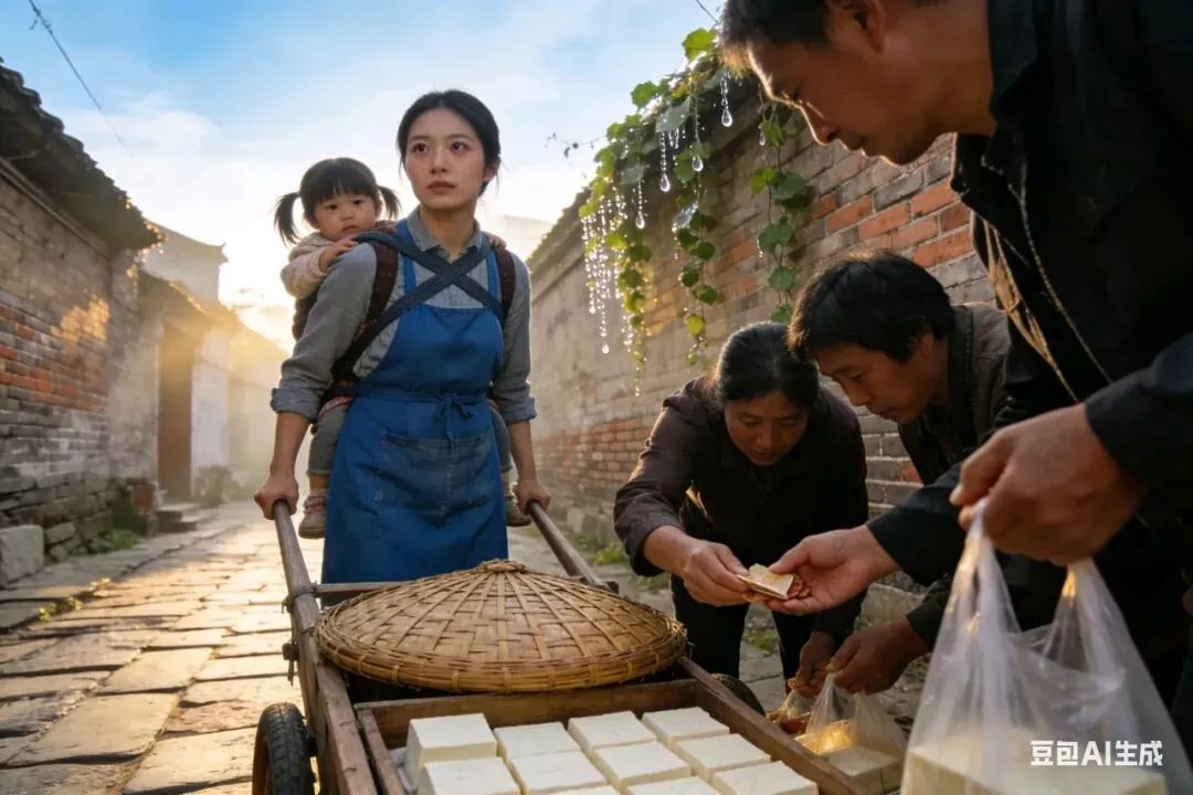 那些日子,她把年幼的女儿绑在背上,从泡豆、磨浆、点卤到成型,一步一步跟着学。凌晨起身劳作,白天背着孩子走街串巷叫卖,汗水浸透衣衫,双脚磨出水泡,累到极致时,连哭的力气都没有。