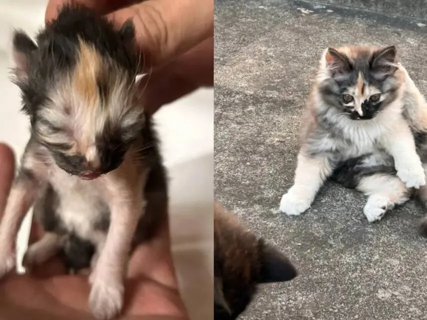 更神奇的是,它把两边的缺点也继承了下来:掉毛、油多、怕冷,听上去很离谱,但它就是这么活下来的,主人一点点把它养大,还会开玩笑说别乱跑,怕在外面被人误会,但照顾从来不会少。