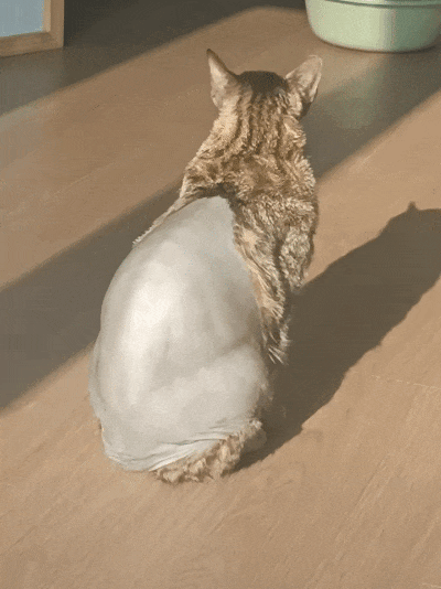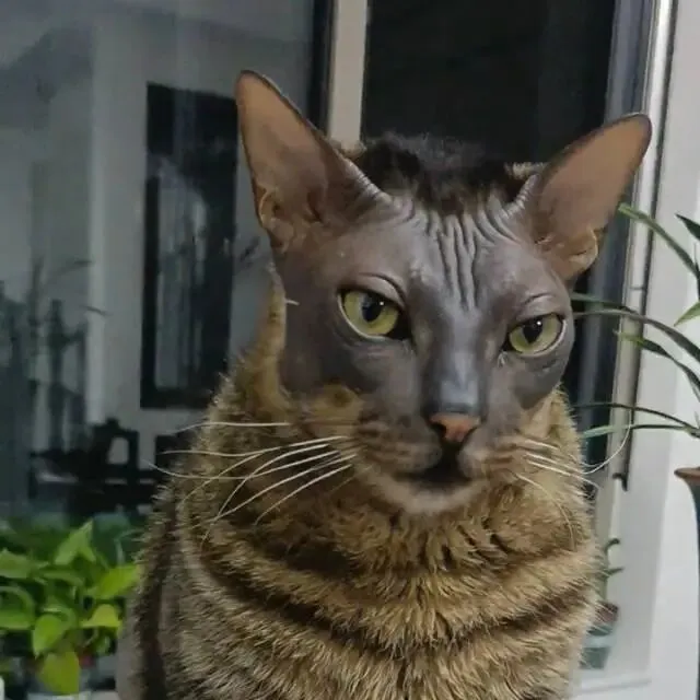 见识过的颜值下限里最狠的就是它了,一只叫凯文的猫把拼接这个词演绎到了极致,狸花和无毛猫的串,按理说多少要融点合,结果没任何融合感,各长各的,两种材质硬生生地拼在一起。