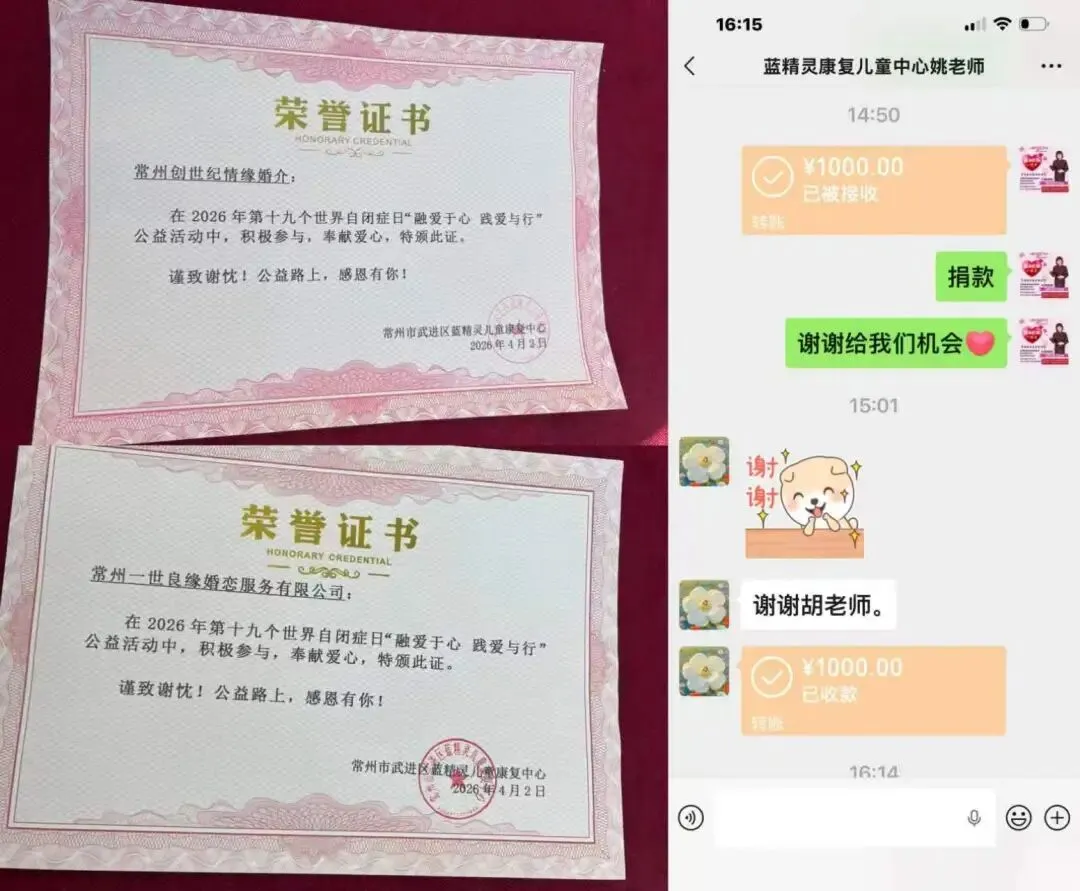 此次参与武进区蓝精灵儿童康复中心在湖塘富克斯流行广场举办的世界自闭症日活动,是创世纪情缘婚恋/常州一世良缘践行社会责任的一小步,却是我们传递品牌温度的一大步。未来,我们将继续关注公益事业,用行动诠释“情缘”二字的深厚内涵——爱,不仅存在于恋人之间,更流淌在社会的每一个角落。