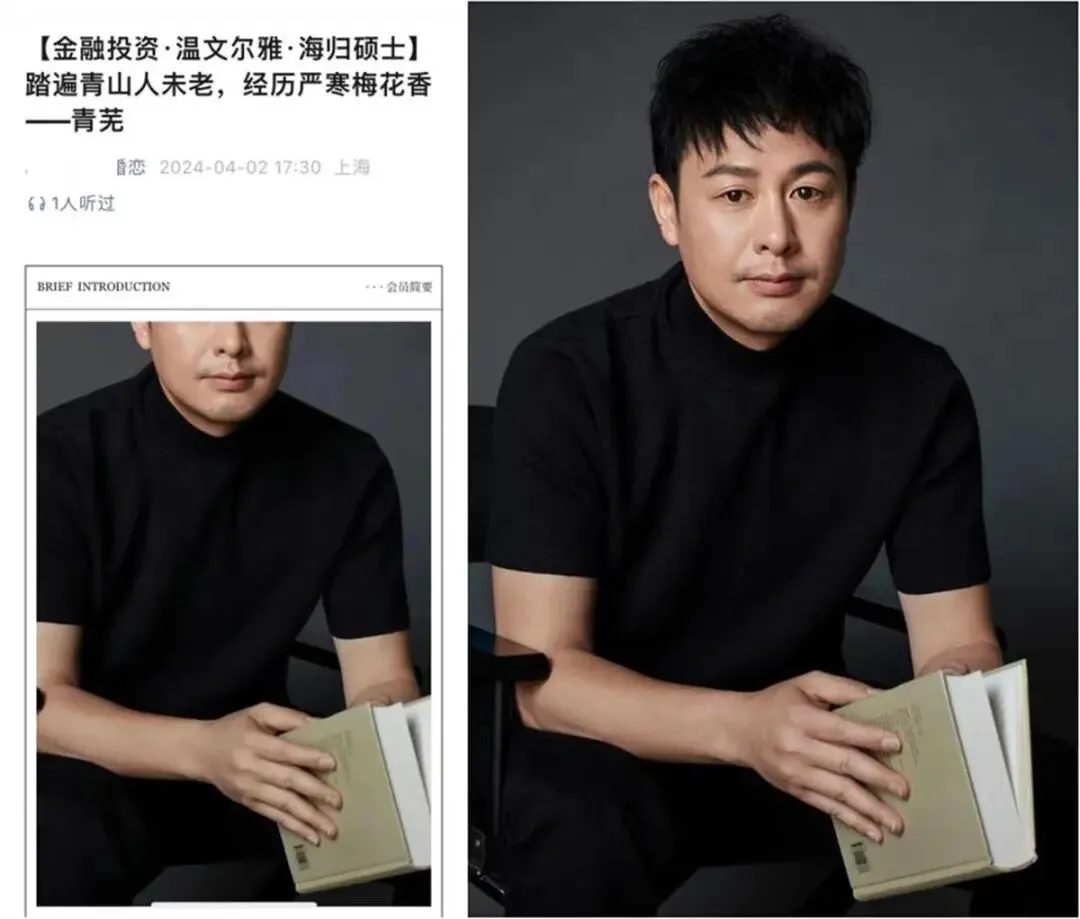 征婚贴资料显示,他是做金融投资的一名海归硕士,性格温文尔雅。推文中描述了现居上海的男士“青芜”的家庭背景、学业、事业等个人情况,意在为其寻找婚恋对象,但使用的照片几乎全是张颂文公开曝光过的照片,只不过截去了半张脸。