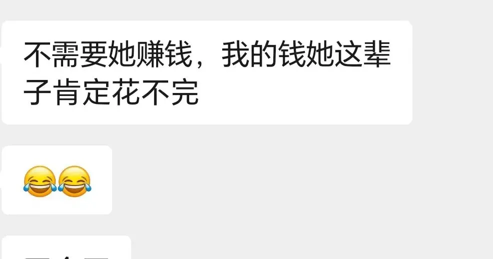 咱说第二种,图片上的,翻译过来就是“我出钱你出爱”,“我养你”…这真是一种bug最大的关系模式,先说“我出钱你出爱”这种,亲密关系是两个人一起创造的一种能量,是情绪增量,情感增量,甚至是财富增量,这里但凡有一方是情感低能,恋爱这条路是跑不通的,当然有钱不愁没有人,但要以阉割灵魂为代价…