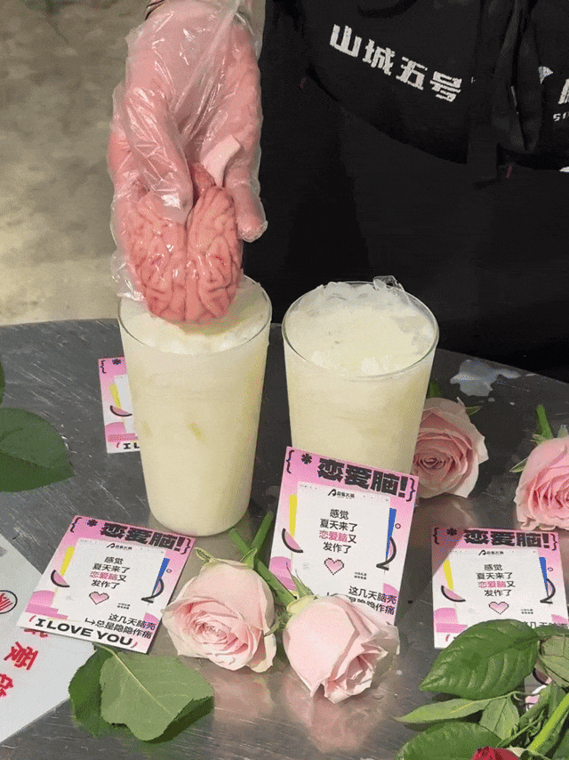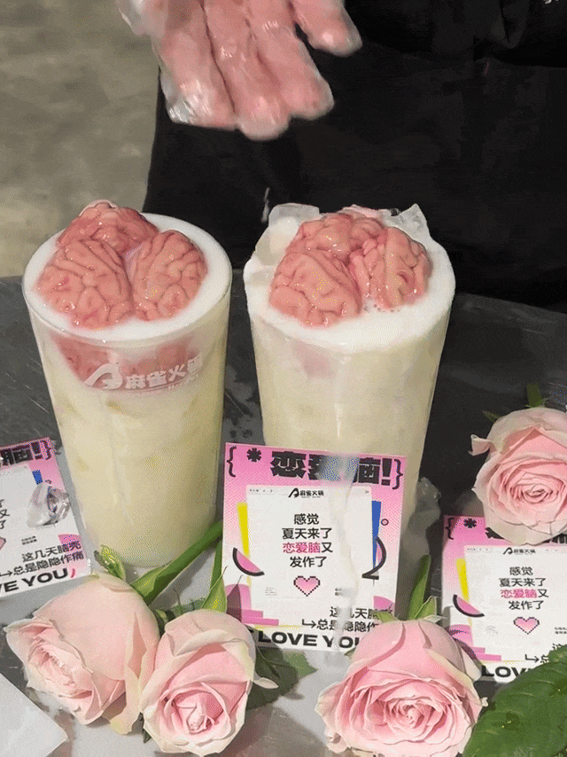 朋友发来一个视频,我把我吓得够呛!一杯奶茶,杯子上面竟然放着一个粉色的猪脑子。上面的纹路很清楚,跟真脑子完全一样。朋友说这叫恋爱脑奶茶。看着感觉它像一块果冻,实在猜不出是用什么做的。我看完了只觉得,多严重的恋爱脑看到它都能立马戒掉,真的太吓人了。你们见过这种放着脑子的奶茶吗?到底谁敢喝啊?