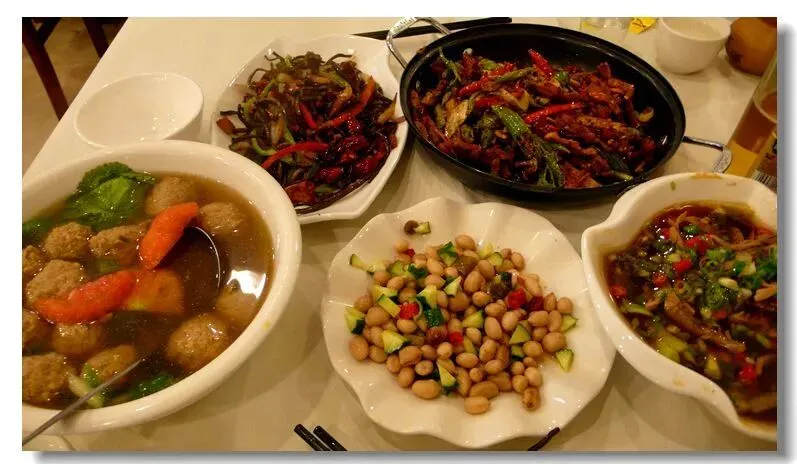 和一号车手点了一堆今天过节,每人要了一瓶啤酒增添点节日气氛吧成都绝对是正宗川菜,辣得一头汗