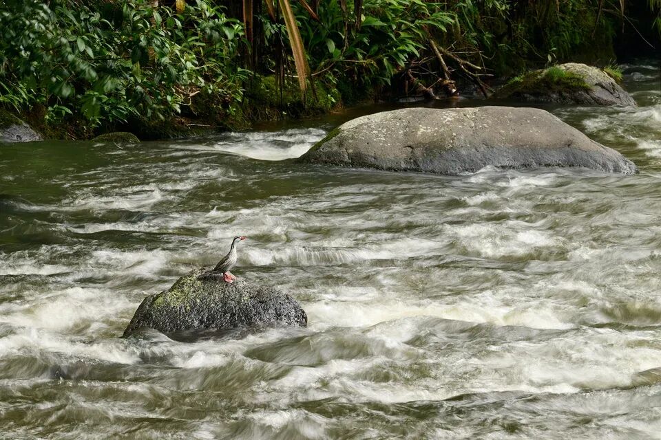 在河岸上探索可不像温带欧洲或北美的大部分地区那样。穿行在这片覆盖着安第斯山脉的陡峭云雾林坡地上,简直是一种折磨。就算在相对平坦的地方,一小时也未必能走200米。因此,能轻松抵达河边是绝对不能错过的机会——尤其当你知道这一河段只住着一对鸭子的时候。