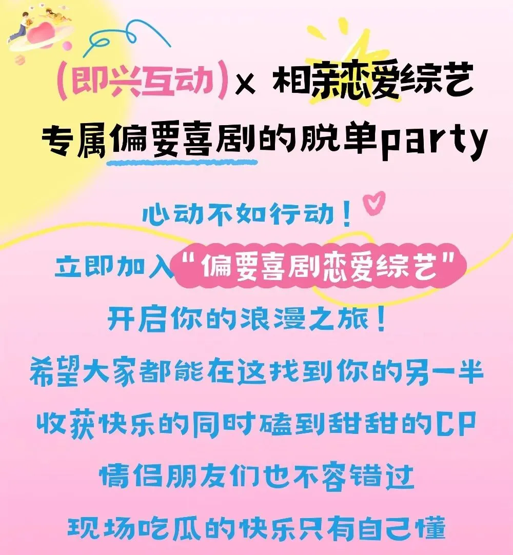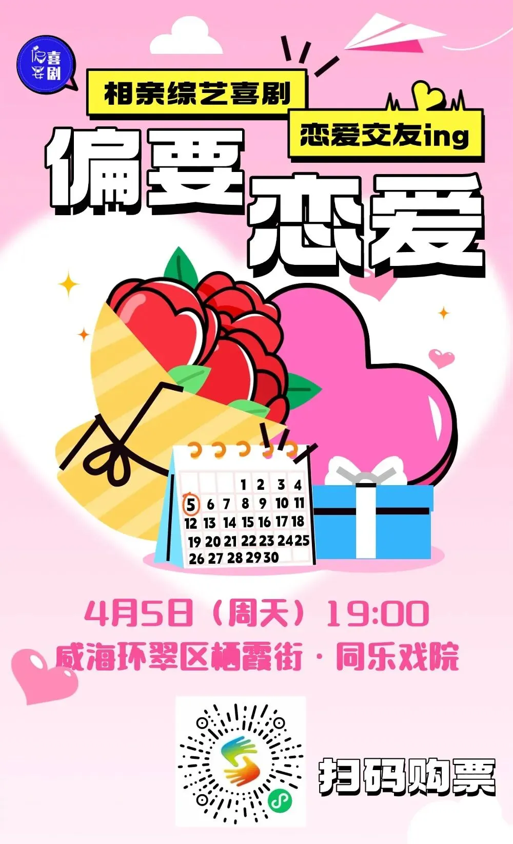 >【威海4.5周天|偏要恋爱喜剧综艺专场】这里有一份「笑到脱单」的邀请函~笑着笑着就牵手了!