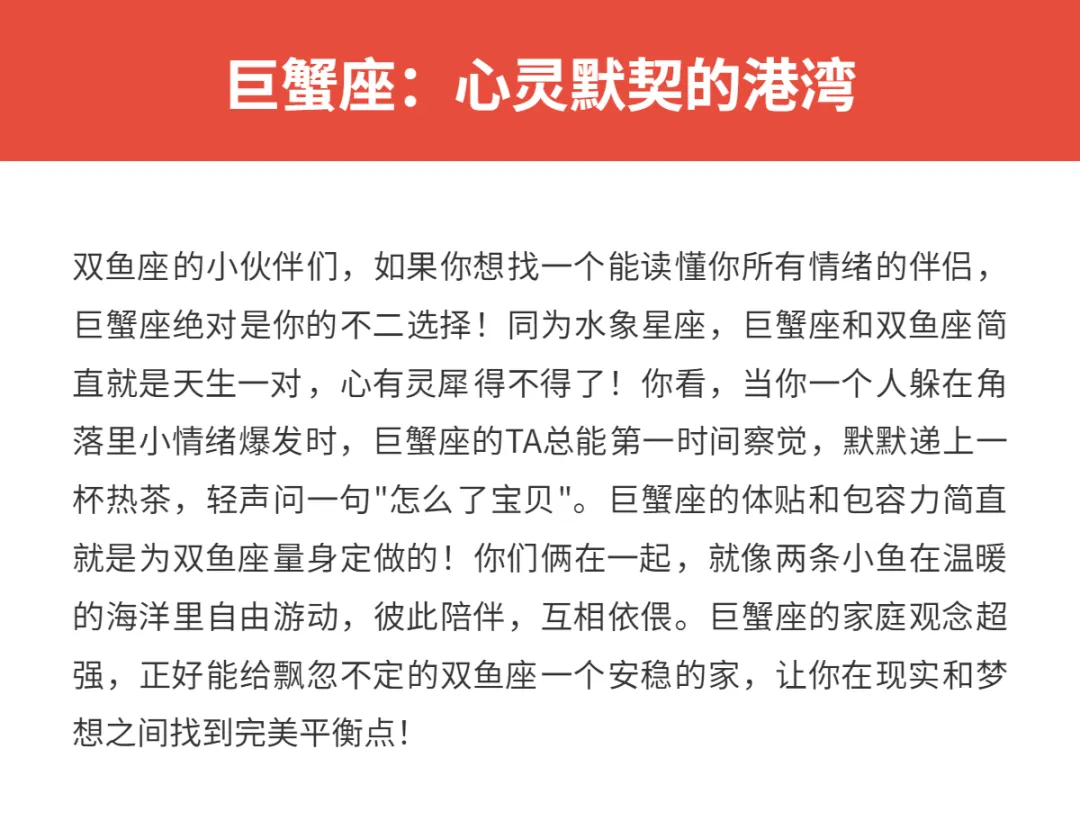 亲爱的星座朋友们,你知道吗?双鱼座的小可爱们在恋爱中可是出了名的浪漫多情!作为十二星座中最后一个星座,双鱼座仿佛集合了前面所有星座的特点,既敏感又体贴,既梦幻又现实。咱们双鱼座的朋友在感情中总是付出满满的爱,但也需要找到能够理解包容自己的另一半呀!今天就来聊聊,哪些星座最适合和双鱼座谈恋爱,让咱们这些多愁善感的小鱼儿找到真爱的港湾!