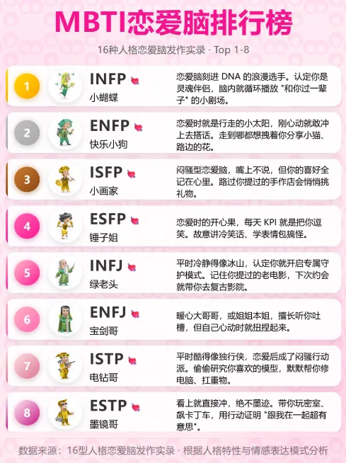 盘点 MBTI 恋爱脑排名,看看你排第几