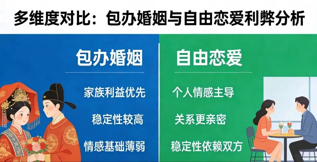 二、五大维度深度剖析:包办婚姻vs自由恋爱